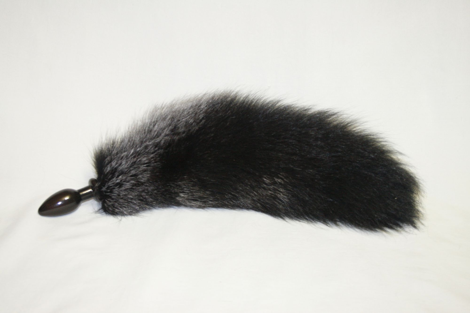 Анальная пробка, черного цвета, диаметр 3,2 см с черным лисьим хвостом. Материал дерево, лак, натуральный мех.
