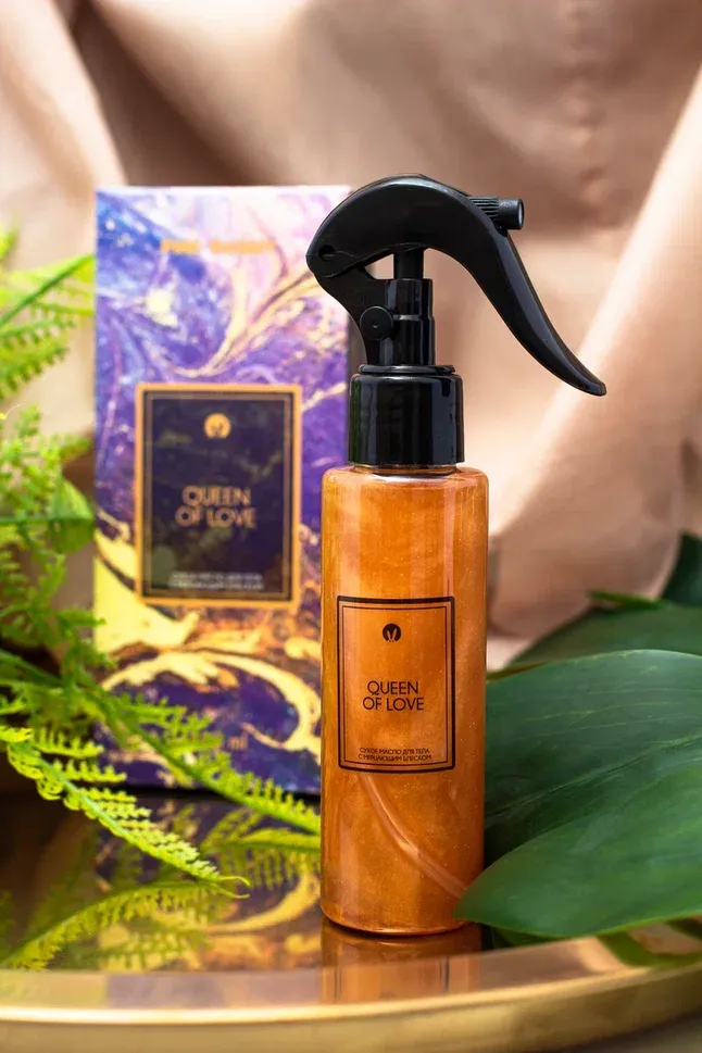 Масло сухое с мерцающим блеском для тела с феромонами “Queen of Love”, 110 мл.