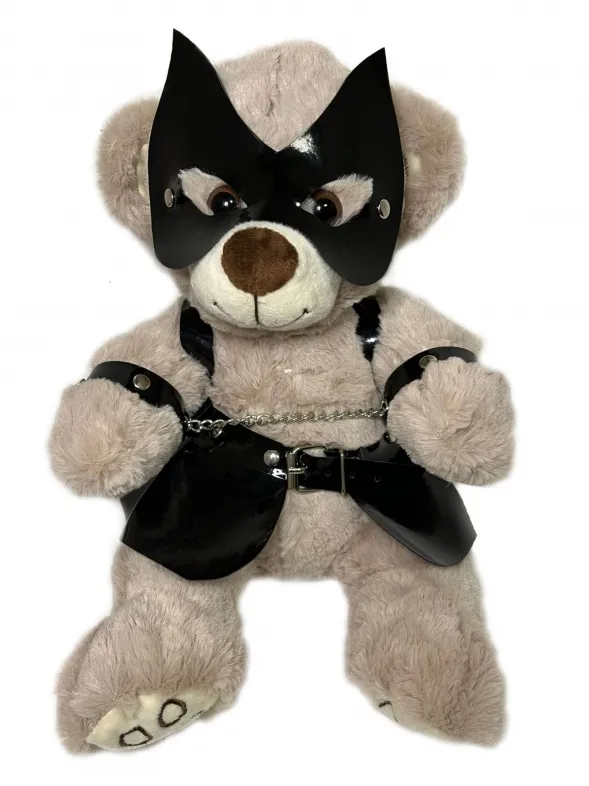 Милый, но при этом дерзкий БДСМ Мишка в маске, корсете и наручниках, интересная идея для подарка или просто яркий элемент в интерьере. Он вам точно понравится! Высота мишки 30см. Костюмчик выполнен из искусственной кожи.