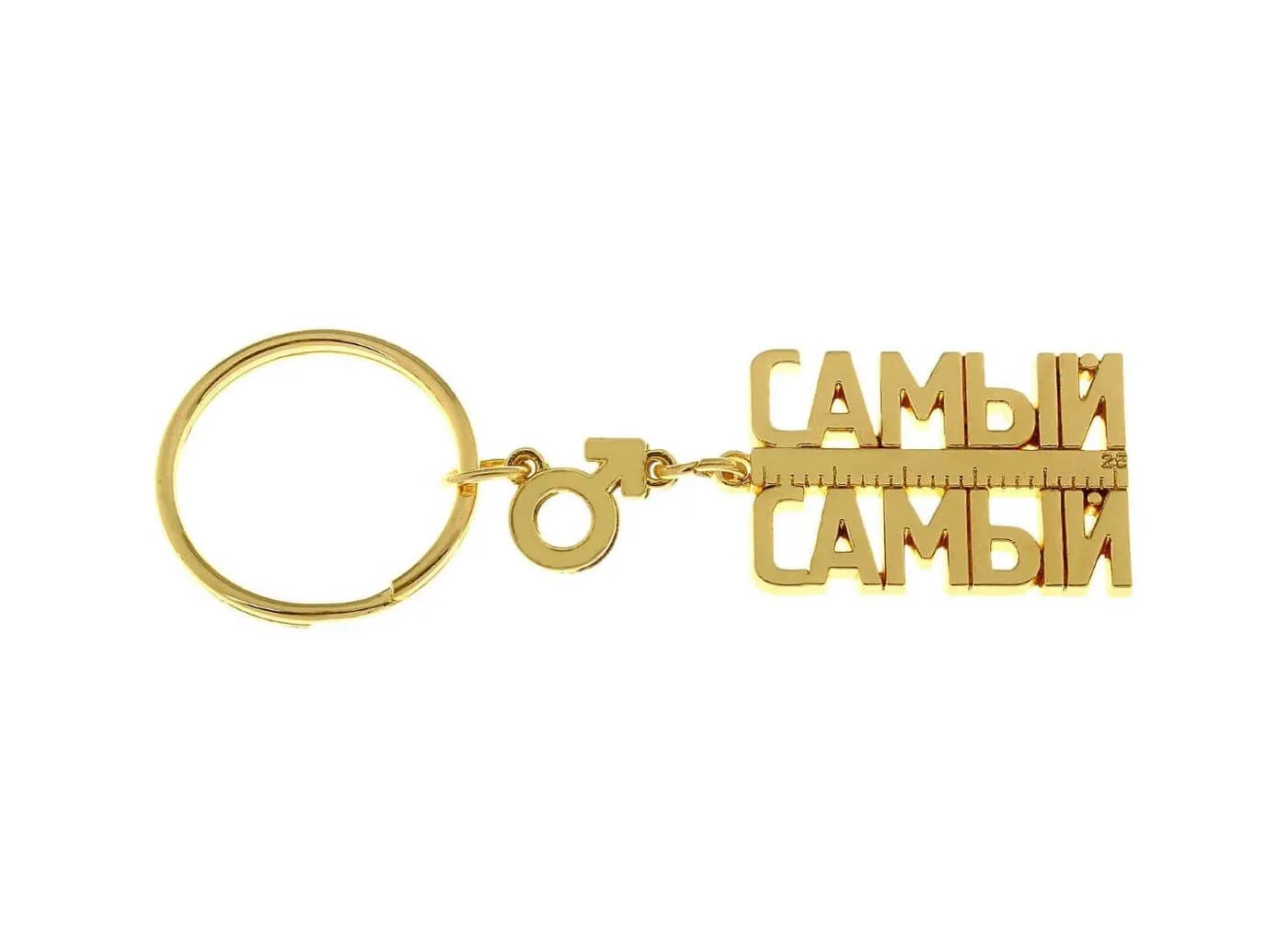 Металлический брелок «Самый самый» от российского производителя Сима Ленд станет прекрасным подарком к любому празднику или просто забавным сувениром без повода. На колечке размещается золотистая подвеска в виде соответствующей надписи и миниатюрный значок, указывающий на половую принадлежность обладателя. Брелок отлично подойдет в качестве украшения для ключей от дома, работы или автомобиля.
