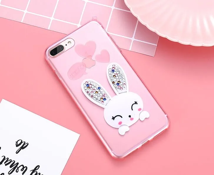Очаровательный чехол розового цвета для iPhone 6/6S станет еще одной запоминающейся деталью Вашего яркого образа! Сзади чехол декорирован милым зайчиком, благодаря которому аксессуар выглядит невероятно мило. Ушки зайчика украшены сияющими стразами, весело переливающимися на свету. Также благодаря небольшому колечку к чехлу можно прикрепить дополнительные украшения, например брелок.