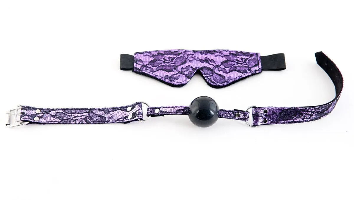 Набор: маска и кляп. Королевское сочетание пурпура и кружева только для любимой невольницы. Больше ни слова и ни взгляда! Только полное подчинение!
