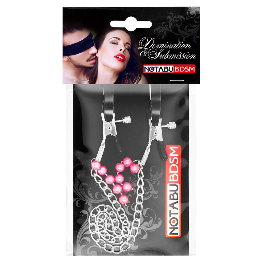 Изящные аксессуары для стимуляции сосков и усиления сексуального возбуждения. На концах зажимов имеются специальные эластичные накладки, препятствующие сильному сдавливанию и травмированию сосков. Зажимы соединены лёгкой металлической цепочкой и украшены подвесками из бусин, что даёт эффект утяжеления.