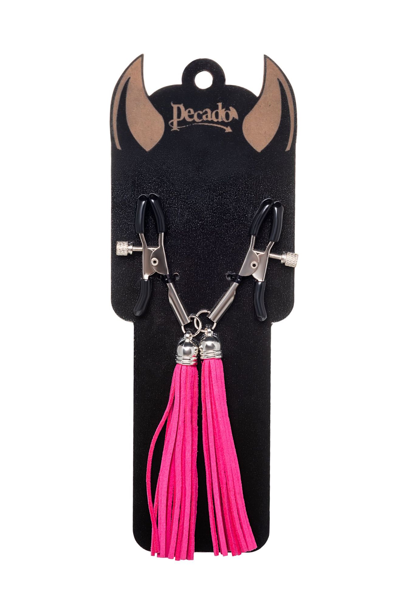 Хотите усилить ощущения от страстных игр с партнером? Увеличить степень возбуждения до невозможного можно с помощью зажимов-прищепок ручной работы от Рecado. Невероятно сексуальный аксессуар пробудит фантазию и повысит чувственность эротических зон. Мягкие резиновые накладки оберегают соски от повреждений. Металлический винт регулирует степень сжатия зажимов: от нежно-приятного до сильно-грубого. На концах черные резиновые наконечники, для безопасного воздействия на нежные участки тела. Компактный размер удобно вмещается как в женскую, так и в мужскую руку. Кисточки из натуральной замши не только визуально украшают эротический атрибут, но и еще утяжеляют его. Для самых смелых и искушенных любителей доминировать и подчиняться. ● Ручная работа. ● Надежная высококачественная фурнитура. ● 100% натуральная замша. ● Общая длина зажимов 14 см, длина кисточки 8,5 см. ● Не требуют специального ухода.