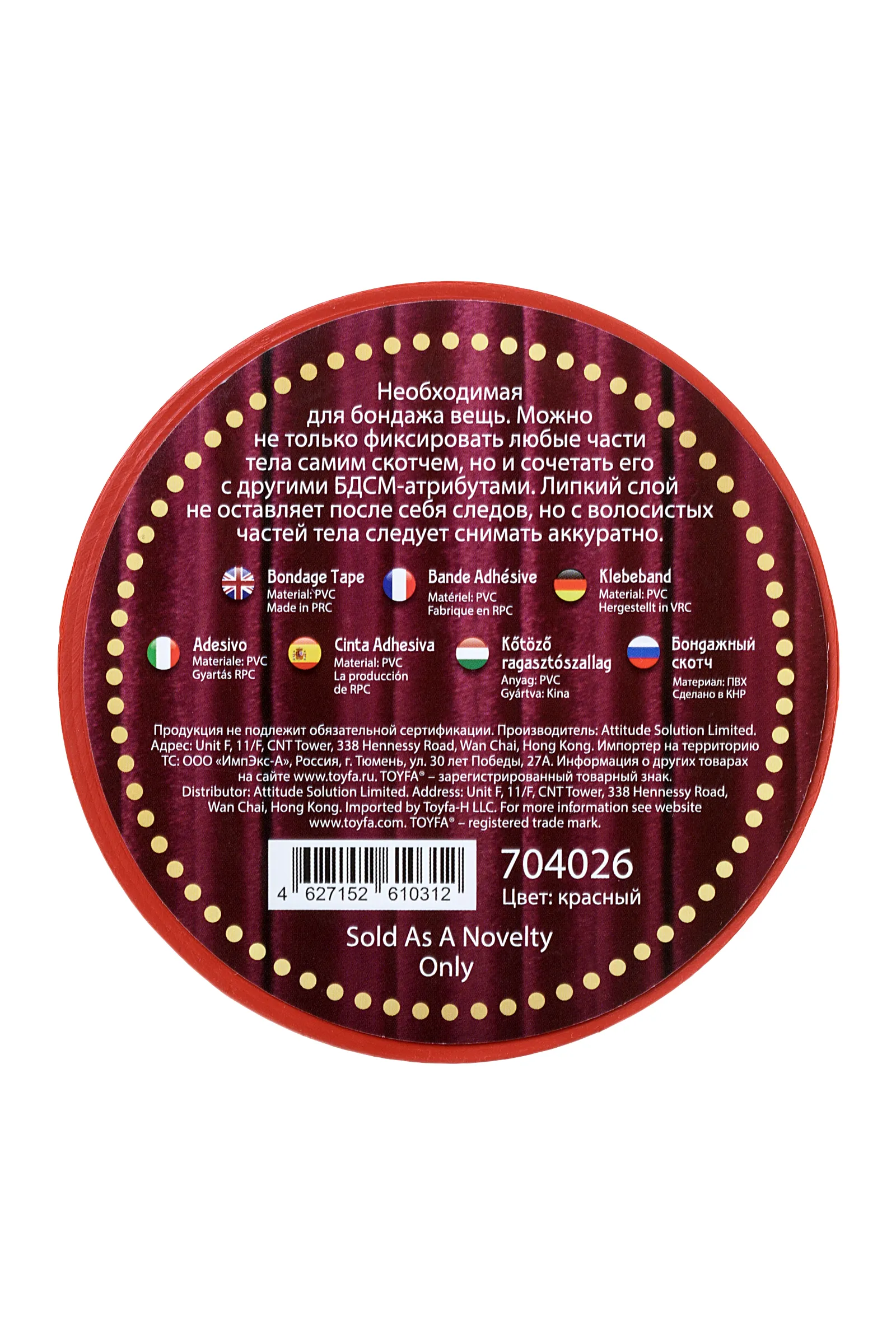 Необходимая для бондажа вещь. Можно не только фиксировать любые части тела самим скотчем, но и сочетать его с другими БДСМ-атрибутами. Липкий слой не оставляет после себя следов, но с волосистых частей тела следует снимать аккуратно. Длина 15м, Ширина 5 см