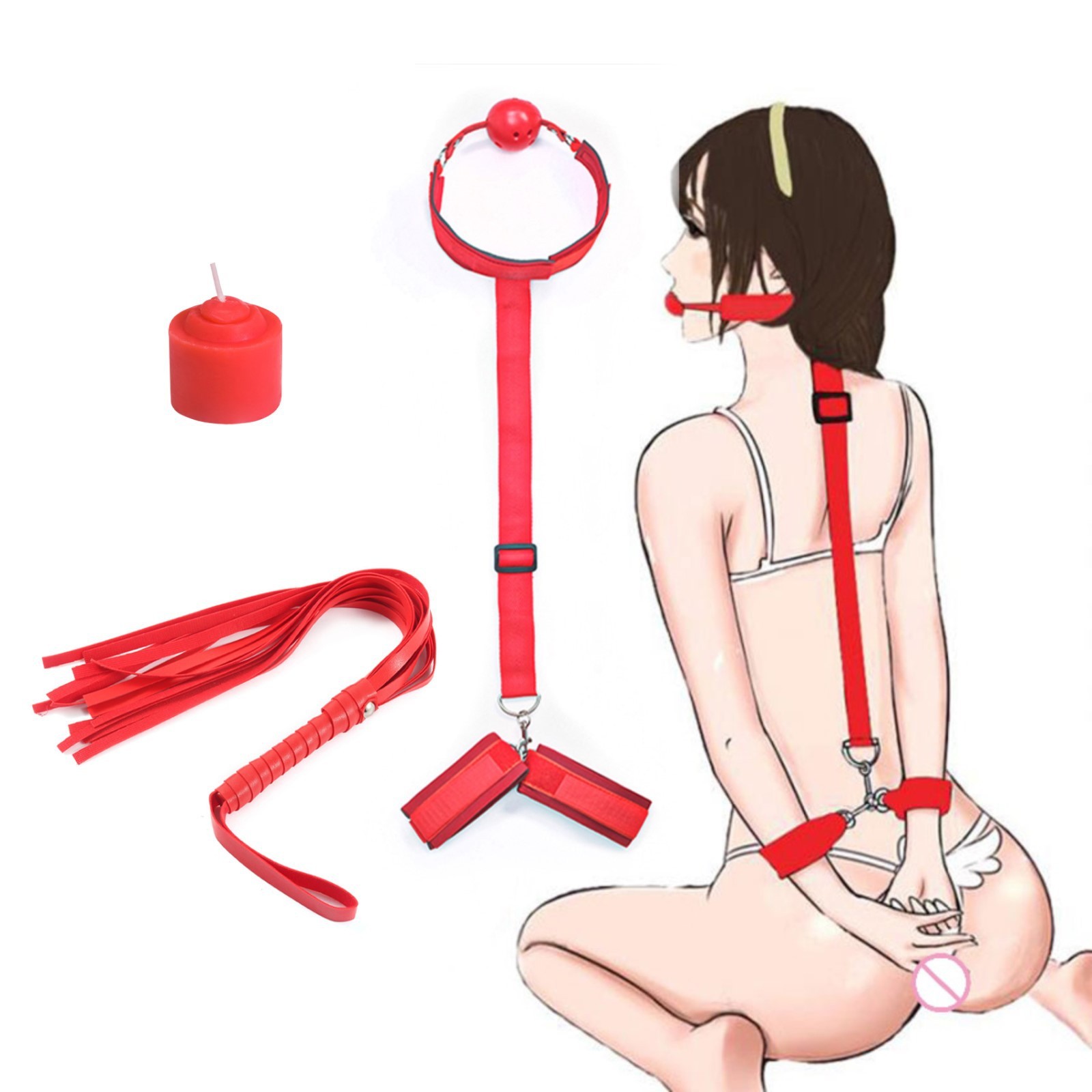 В состав набора входит 3 предмета: фиксатор, свеча, плеть.