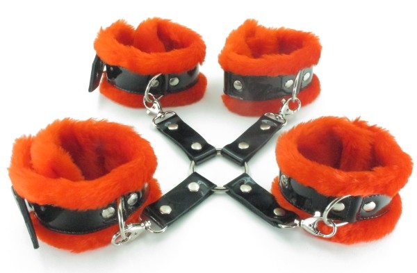 Если Вам нравится доминировать во время сексуальных игр, то этот стильный набор, просто создан для удовлетворения именно таких потребностей. Изящный секс-девайс не оставит равнодушной даже очень требовательную партнершу. Благодаря безопасным материалам, бондаж не травмирует кожу и не причиняет дискомфорта. Изделие украшено роскошным мехом и лаковыми деталями, что особенно привлекает девушек. Оковы соединяются между собой карабинами.