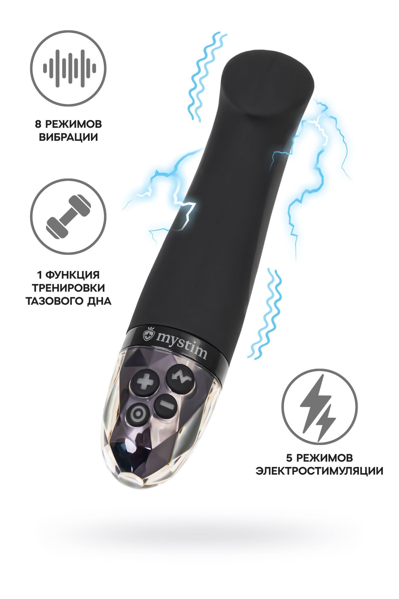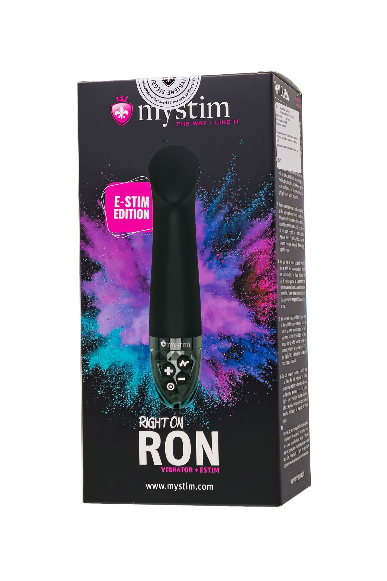 Right on Ron от бренда Mystim – вибратор, созданный для того, чтобы максимально раскрыть потенциал ваших оргазмов и подарить незабываемые ощущения. С уникальной комбинацией G-точечной стимуляции и электростимуляции, он перевернет ваше представление о сексуальных игрушках. С мягким изогнутым широким кончиком, Right on Ron безошибочно находит точку G, обеспечивая максимальное удовольствие. Рабочая длина всего 12 см, а диаметр 3,6 см, что делает игрушку максимально комфортной даже для неопытных пользователей. Благодаря уплощеному основанию вы можете использовать вибратор для любых эрогенных зон. Оснащенный 8 режимами классической вибрации, он стимулирует интимную зону и улучшает кровообращение, готовя ваше тело к волнам блаженства. Но настоящая изюминка в том, что Right on Ron предлагает 5 уникальных программ электростимуляции с 10 уровнями интенсивности. От нежных трепетаний до глубоких волн возбуждения, эти электрические импульсы обостряют чувствительность и приводят вас к ярким оргазмам. Пожалуйста, обратите внимание, что электростимуляция имеет некоторые ограничения и не рекомендуется при наличии металлических имплантов, сердечных заболеваний или беременности. Перед покупкой внимательно изучите инструкцию от производителя, чтобы насладиться безопасным и удовлетворительным опытом. Mystim Sensation Seeker обещает не только удовольствие, но и заботу о вашем здоровье. Особый шестой режим предназначен для тренировки мышц тазового дна – это инновационная функция, способствующая поддержанию женского здоровья и усилению удовольствия. Режим тренировки тазового дна помогает укрепить мышцы путем электростимуляции, направленной на последовательное сокращение и расслабление мышц. Регулярные тренировки позволят более глубоко воспринимать собственное тело, а значит и более яркие ощущения во время секса. Вибратор сделан из медицинского силикона, гарантируя приятные ощущения и бережное отношение к коже. Элегантный и современный дизайн никого не оставляет равнодушным. Для дополнительного комфорта используйте лубрикант на водной основе. Этот перезаряжаемый мастер удовольствий непроницаем для воды и обладает потрясающей мощью. Не используйте режим электростимуляции в воде. Для зарядки вибратора просто подключите USB-кабель к игрушке. Роскошная ручка-держатель выполнена из прозрачного ABS-пластика и украшена зеркальными элементами. Сделайте вашу интимную жизнь более насыщенной и увлекательной с Right on Ron. Блокировка кнопок. Чтобы включить или отключить блокировку кнопок, одновременно нажми и удерживай кнопку вибрации и кнопку “Минус” или “Плюс” в течение 3 секунд. (При этом кнопки несколько раз кратковременно мигнут.) Внимание: новое устройство поставляется с включенной блокировкой кнопок, поэтому перед первым использованием блокировку нужно отключить. 8 программ вибрации Широкий мягкий кончик для зоны G 5 программ электростимуляции с 10 уровнями интенсивности 1 программа тренировки мышц тазового дна Длина 16,5 см Диаметр 3,6 см Изготовлен из 100 % медицинского платинового силикона. Цвет - глубокий черный Магнитное зарядное устройство Mystim и USB-зарядное устройство в комплекте Время зарядки - 120 мин, время работы - 90 мин.