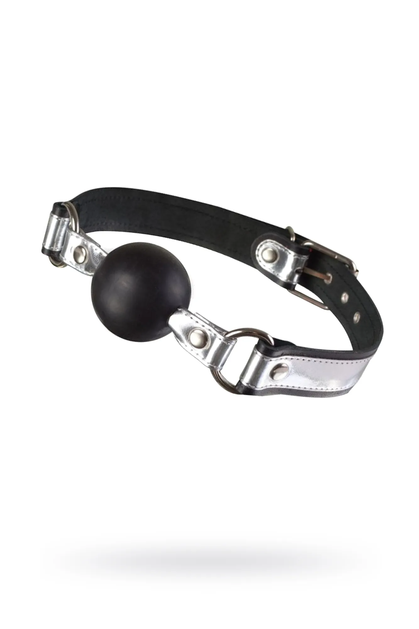 Кляп от Ситабелла – это девайс BDSM, который позволит сделать секс-партнёра безмолвным и покорным. Упругая сферическая часть изготовлена из современного материала ТЭП, который не способен нанести врез зубам и прост в уходе, достаточно промыть теплой водой с мыльным раствором и просушить. Особое внимание заслуживают ремешки, между которыми закреплён кляп-шар, они изготовлены из натуральной высококачественной кожи чёрного цвета и декорированы дополнительными накладками под серебро. Роскошный кляп непременно станет украшением Вашего тела. Металлическая фурнитура имеет никелевое покрытие. Зафиксировать девайс на теле и отрегулировать размер можно при помощи пряжки. Общая длина кляпа около 57 см. Ширина ремешков 2,5 см. Диаметр шара 4,5 см.