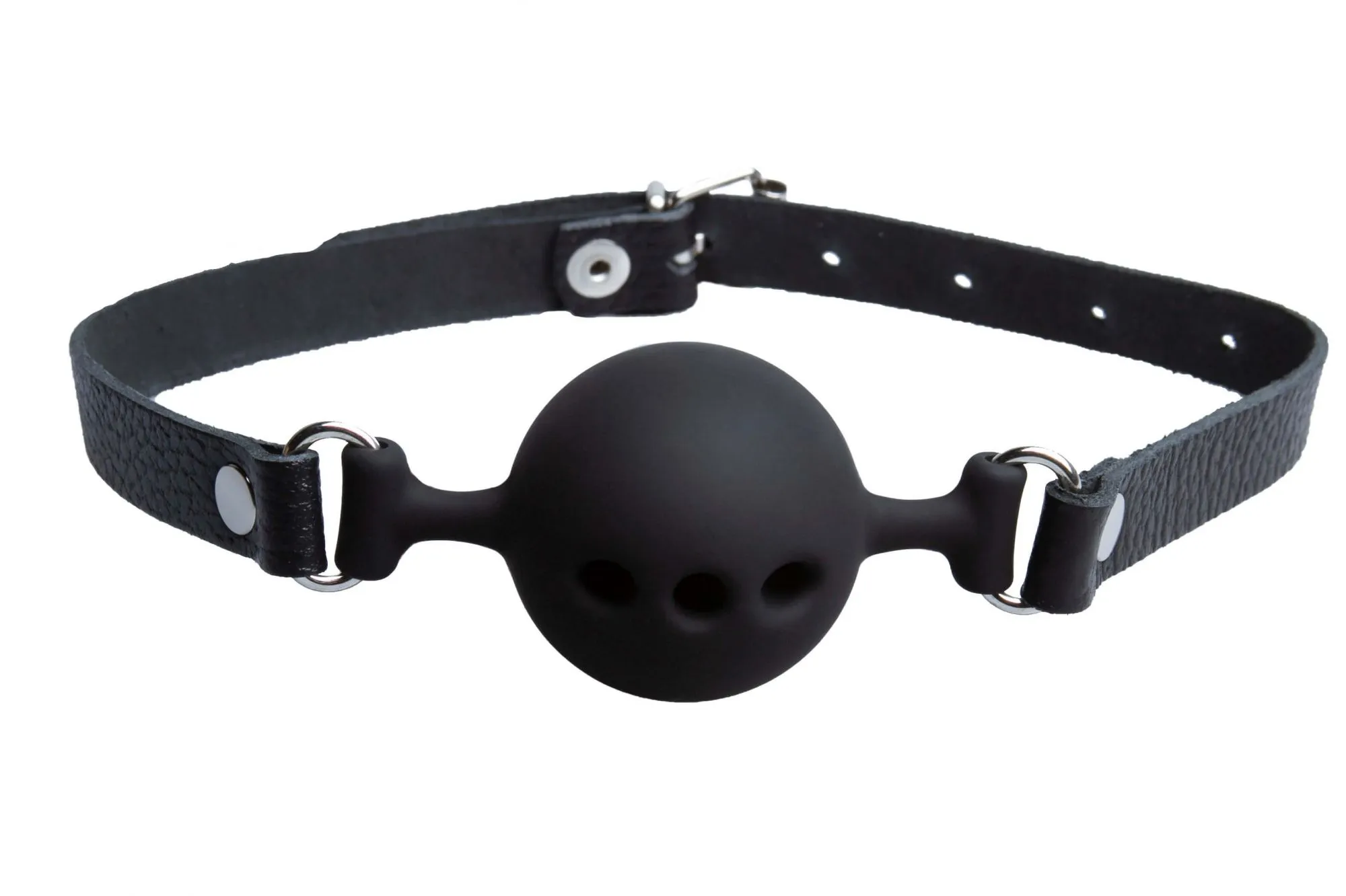 Кляп это незаменимый аксессуар для пар, предпочитающих игры с элементами БДСМ. Перфорация в кляпе позволяет дышать без проблем. Ремешок можно регулировать по размеру. Длина от конца до конца 54 см, диаметр шарика 4.5 см.