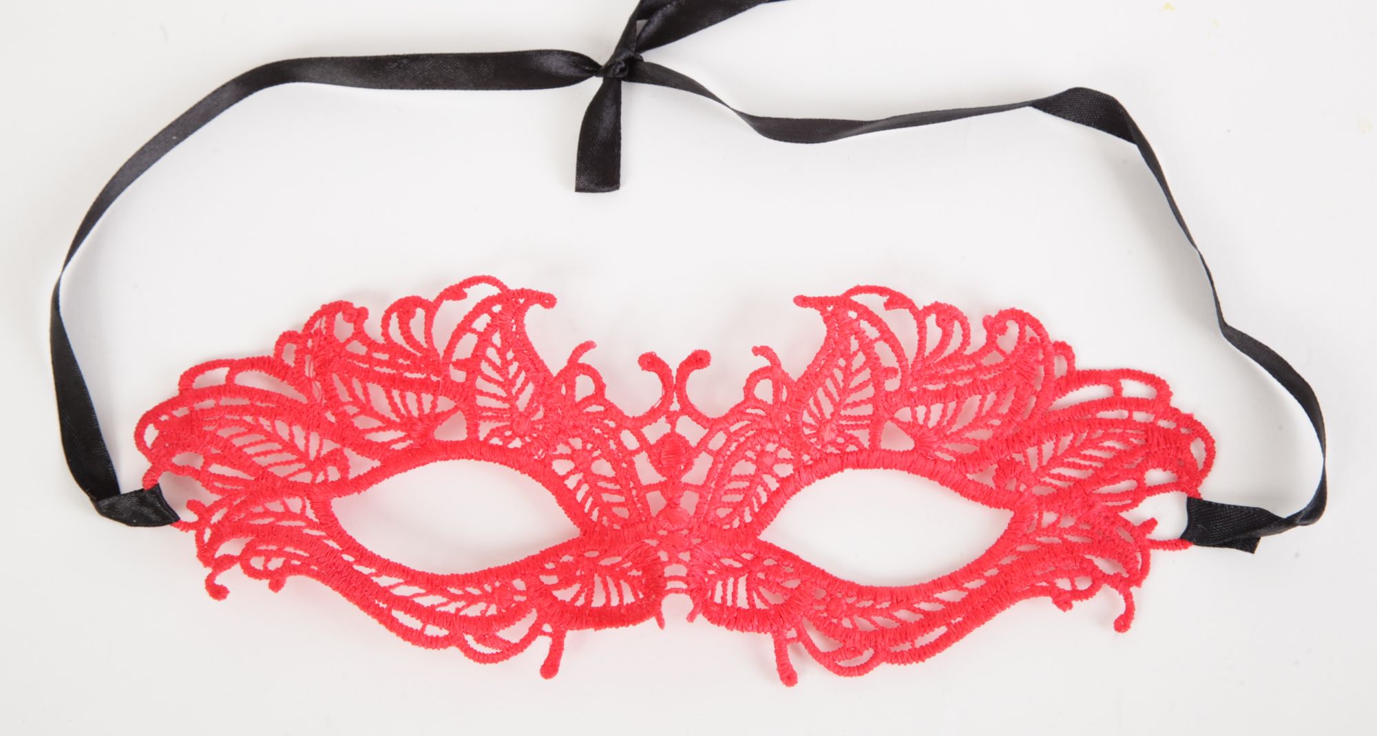 Кружевная маска в венецианском стиле с многочисленными узорами. Завязывается на черные атласные ленты. Размеры маски: длина- 22,5 см, ширина - 8 см. Упаковка- картонный конверт. Страна изготовления- Китай.