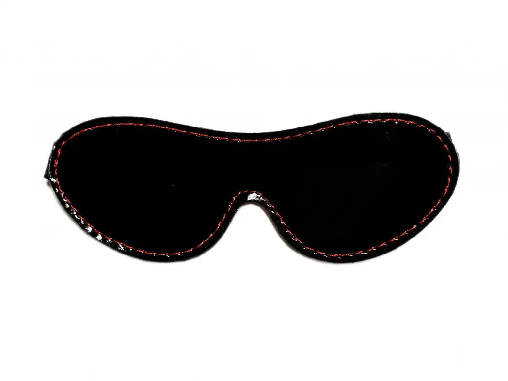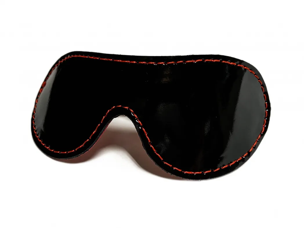 Маска из натуральной кожи на резинке. Можно испльзовать как двустороннюю: одна сторона выполнена из лаковой кожи черного цвета, а вторая из красной перчаточной кожи,очень нежной и приятной к лицу. Декорирована маска контрастной красной строчкой. Благодаря эластичной резинке, размер универсальный, ширина резинки 2см.