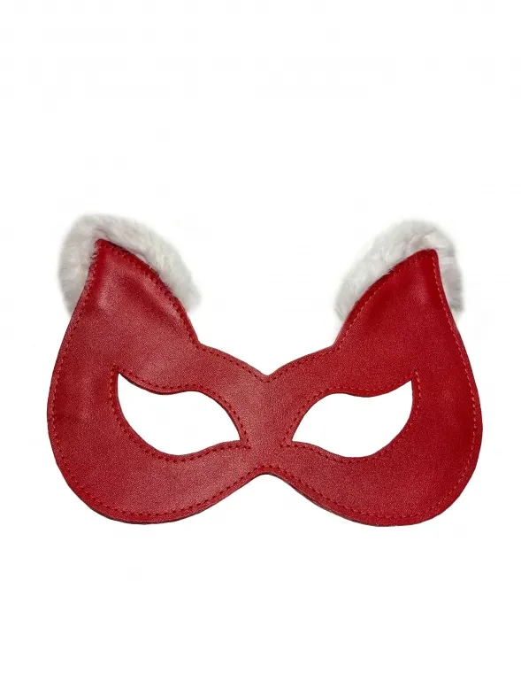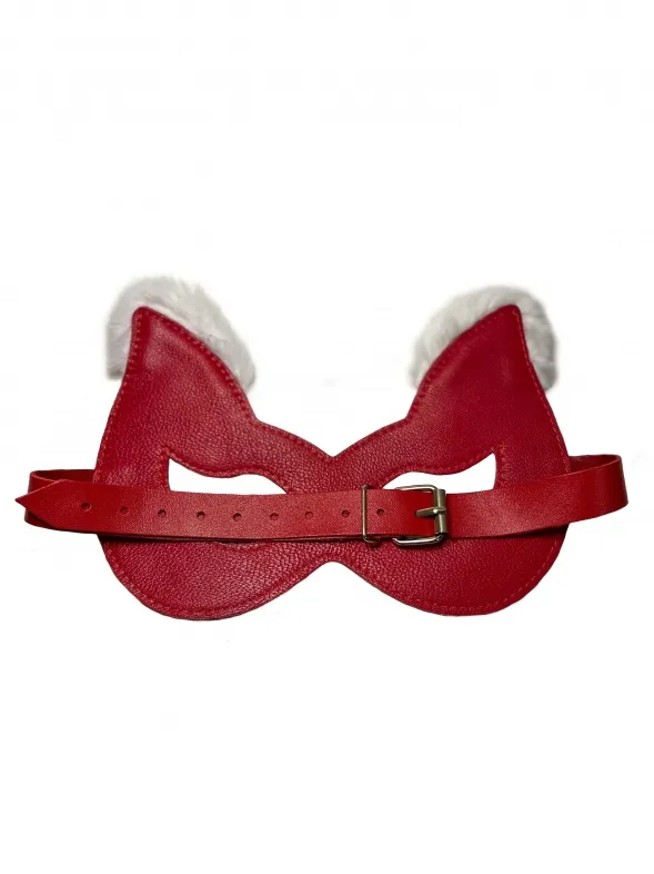 Игривая маска красного цвета, выполненная из натуральной кожи. Ушки маски украшены нежным белым эко-мехом, что придаёт ей яркости. Фиксируется сзади с помощью металлической пряжки, позволяя выбрать комфортный обхват головы. Форма макси эффектно подчеркивает глаза и создаёт необычный образ.