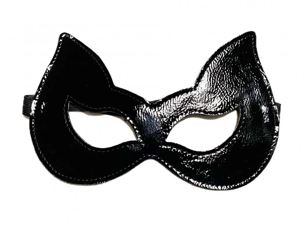 Игривая маска с ушками, выполненная из черной эко-кожи. Лицевая сторона сделана из лакового материала, а оборотная из матового, что позволяет по желанию носить аксессуар любой стороной. Эластичная резинка обеспечит комфорт во время носки. Красивая, элегантная форма эффектно подчеркнет глаза и добавит загадочности образу. Экономичный, экологичный и просто красивый аксессуар! Материал: эко-кожа, эластичная резинка