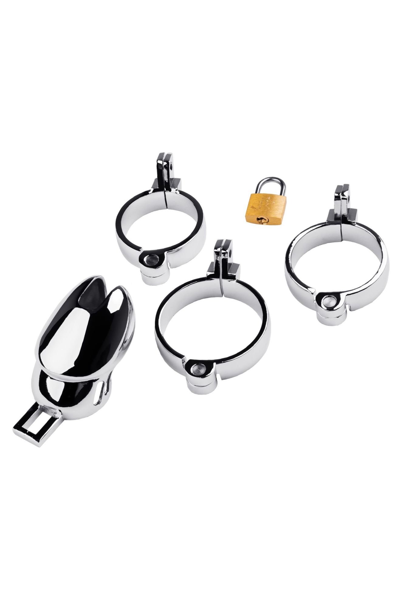 Пояс верности мужской, TOYFA Metal, серебристый. В комплекте 3 кольца разных диаметров: 4/4,5/5см. В комплекте также идет замок с тремя ключами.