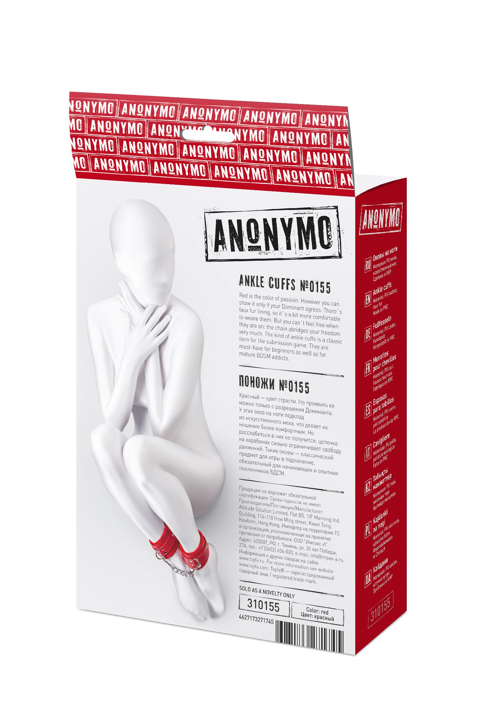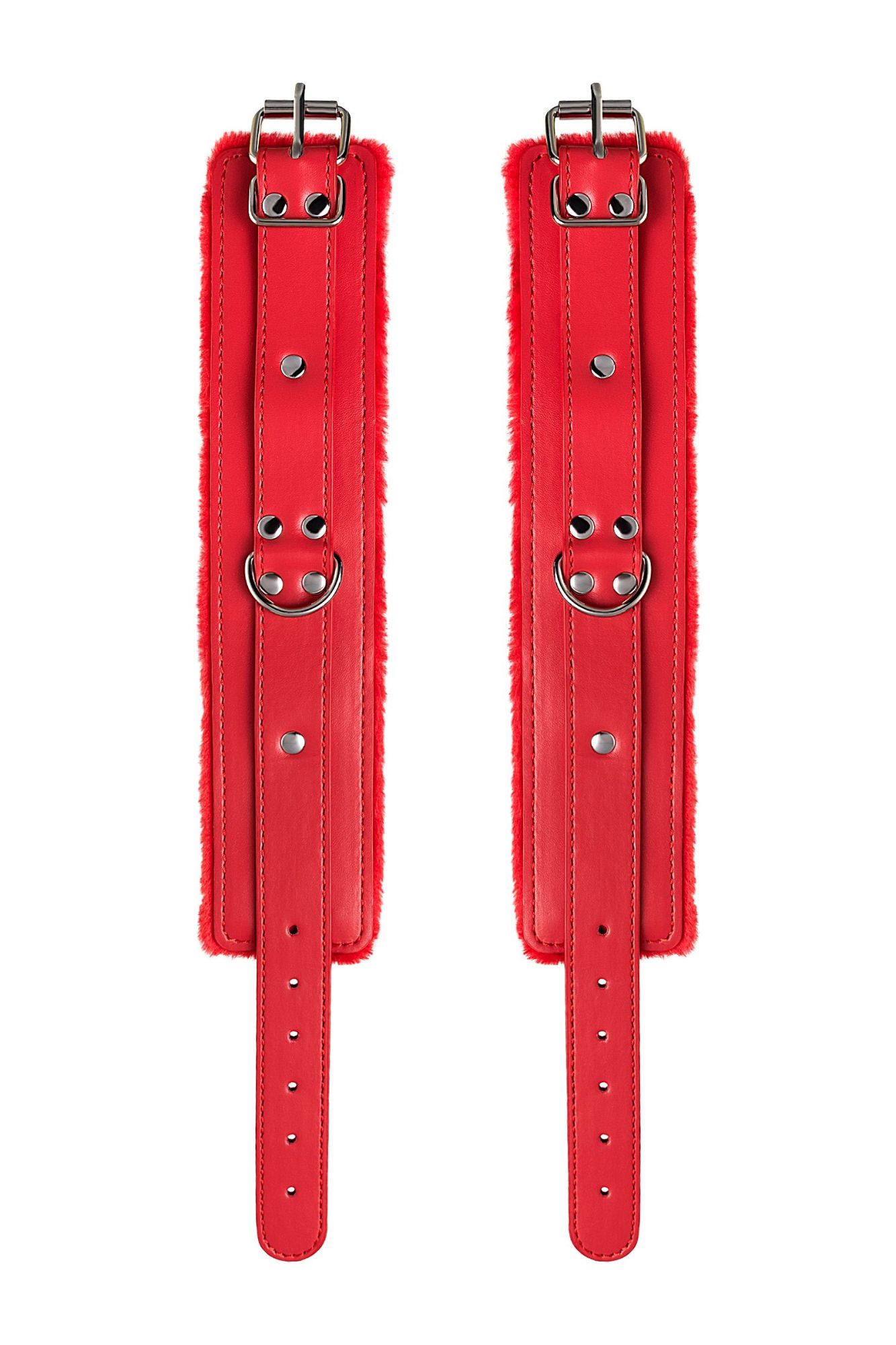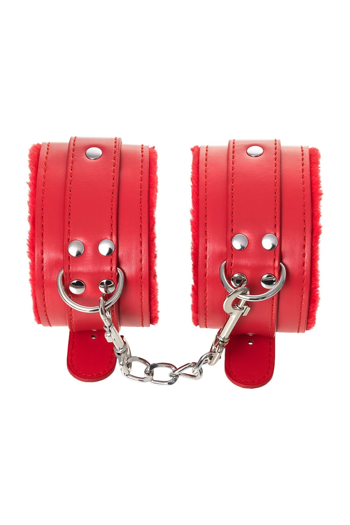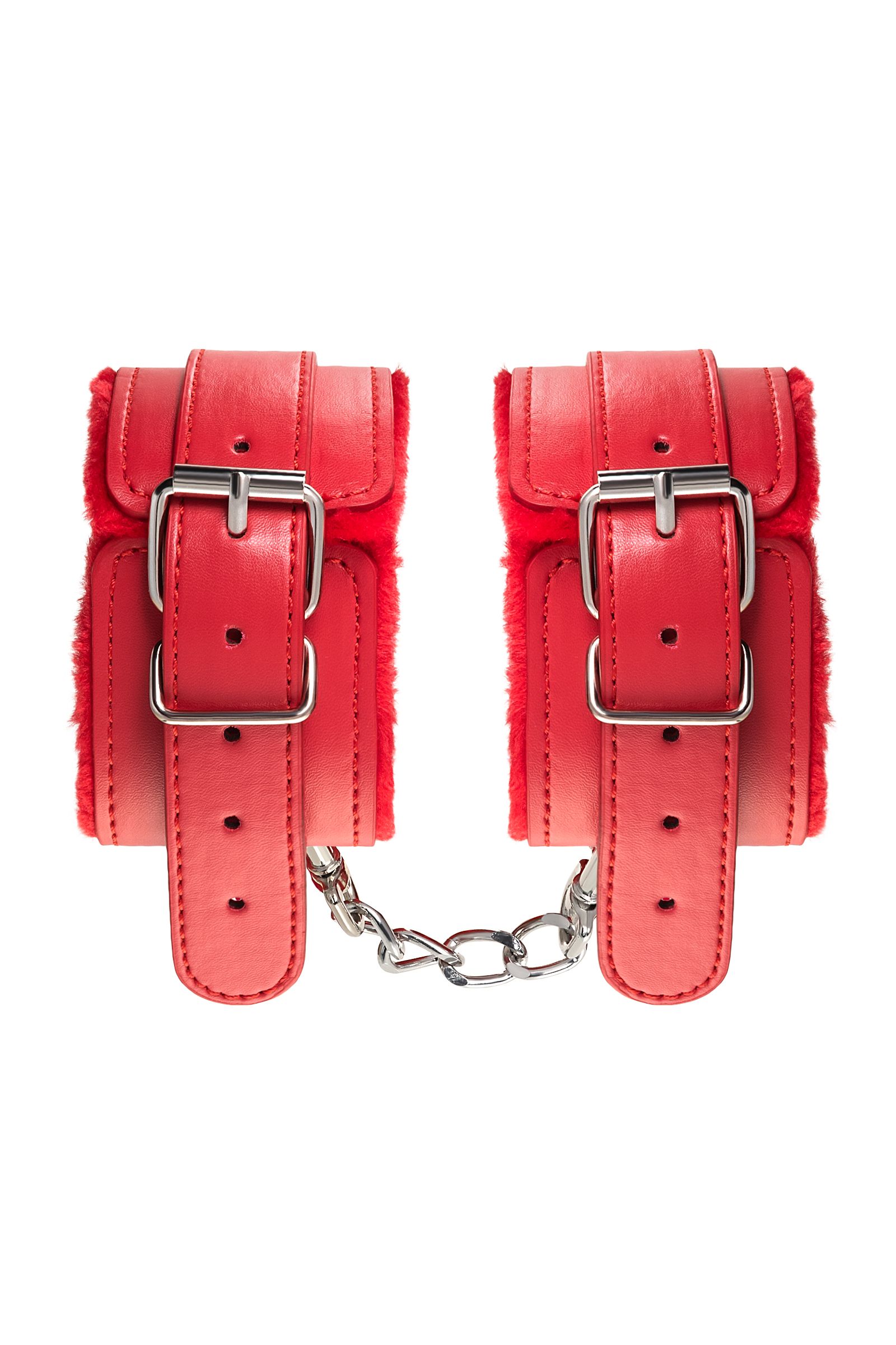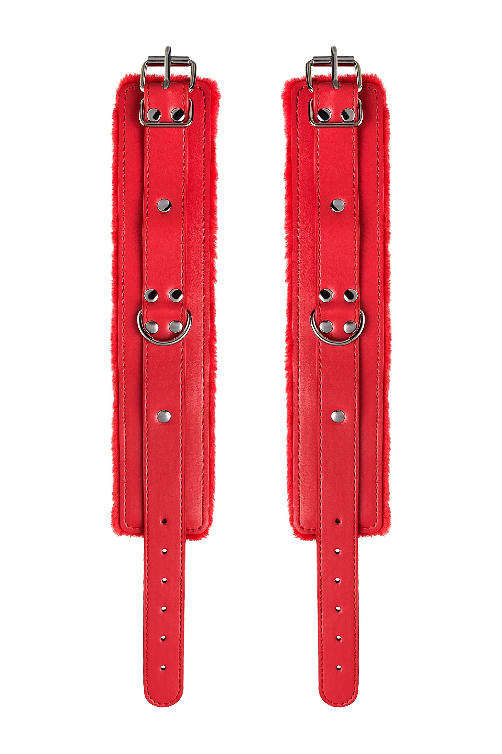 Оковы на ноги яркого красного цвета с металлической отделкой говорят вовсе не об агрессии. Эти произведения искусства говорят о страсти, которую можно проявить, но только с разрешения Доминанта. Подклад из искусственного меха делает ношение этих оков более комфортным, но расслабиться в них не получится – цепочка на карабинах сильно ограничивает свободу действий. Длина поножей позволяет использовать их практически на любой размер ног. Отрегулировать размер и силу обхвата легко с помощью ремешка и металлической пряжки. Оковы – классический предмет для игры в подчинение, обязательный для начинающих и опытных поклонников БДСМ. Дополните комплект аксессуарами - ошейником, кляпом, наручниками и продемонстрируйте что значит грубое обращение и полный контроль над свободой. Материал: PU кожа, металл Цвет: красный Длина: 27 см Ширина: 5,5 см Длина сцепки: 15,5 см