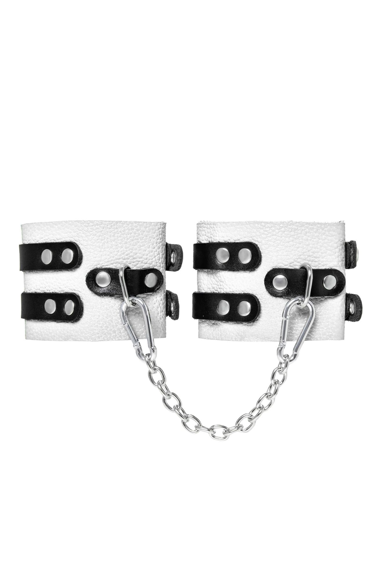 Мягкие оковы с двумя жёсткими ремешками от Pecado помогут обездвижить партнера во время сексуальных прелюдий или жестких БДСМ-играх. Оковы изготовлены полностью из белой, натуральной кожи. Ремешки выполнены из чёрной жёсткой кожи, украшены люверсами. Выделка материала произведена вручную. Ремешки и широкая манжета хорошо держат форму: не тянутся и не мнутся. Качественная металлическая фурнитура добавляет лоска изделию, а аромат натуральной кожи повышает градус возбуждения. Благодаря широкому запасу регулировок, можно подобрать необходимый обхват. Аксессуар удобно застегивать и легко расстегивать. При правильном использовании не оставляет следов на теле и не доставляет дискомфорта. Манжеты оков соединяются между собой помощью двух карабинов и съемной стальной цепочки. Подходит и для женских, и для мужских ног. ● 100% натуральная кожа. ● Ручная работа. ● Износостойкий, тактильно приятный материал. ● Надежная высококачественная фурнитура. ● Универсальный размер. ● Ширина манжет - 7см Длина манжет - 25см Длина сцепки - 20см