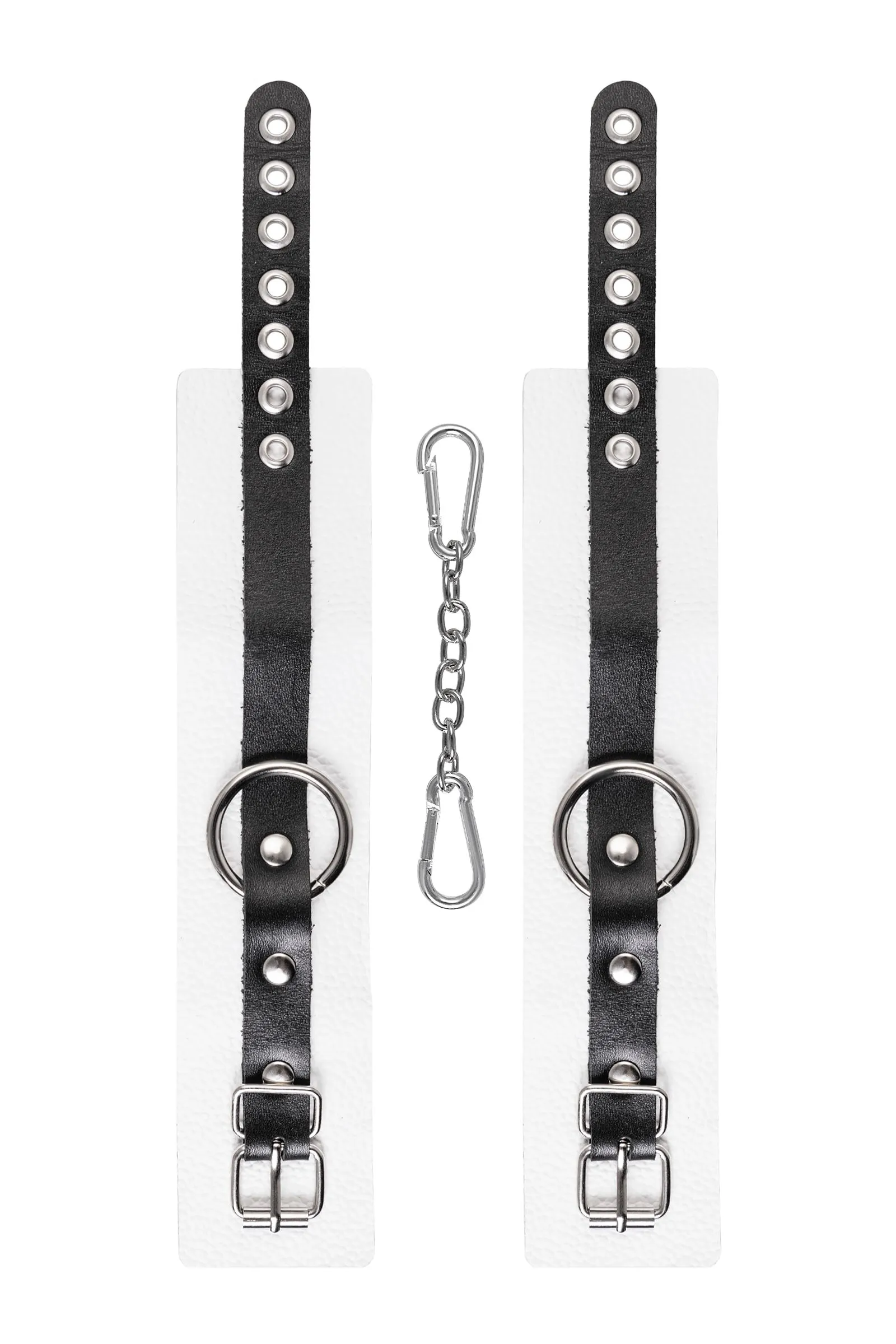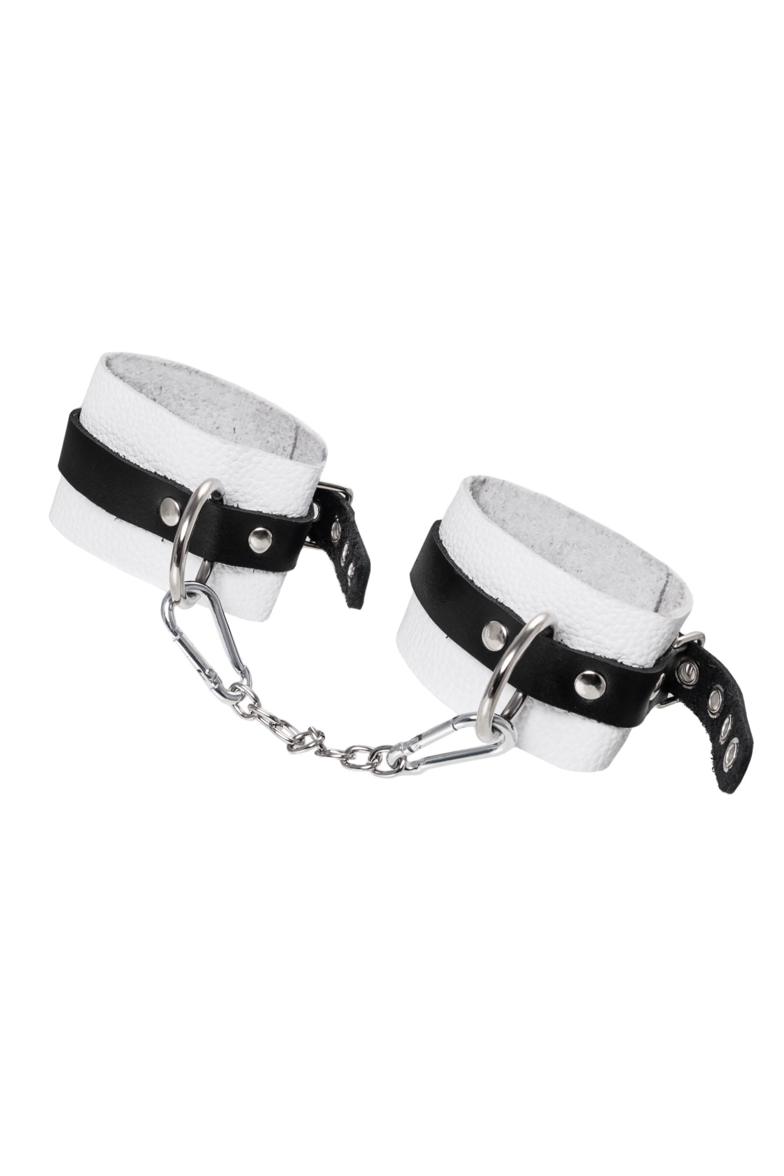 Мягкие оковы с жёсткими ремешками от Pecado помогут обездвижить партнера во время сексуальных прелюдий или жестких БДСМ-играх. Наручники изготовлены полностью из белой, натуральной кожи. Ремешки выполнены из чёрной жёсткой кожи, украшены люверсами. Выделка материала произведена вручную. Ремешки и широкая манжета хорошо держат форму: не тянутся и не мнутся. Качественная металлическая фурнитура добавляет лоска изделию, а аромат натуральной кожи повышает градус возбуждения. Благодаря широкому запасу регулировок, можно подобрать необходимый обхват. Аксессуар удобно застегивать и легко расстегивать. При правильном использовании не оставляет следов на теле и не доставляет дискомфорта. Манжеты оков соединяется между собой помощью двух карабинов и съемной стальной цепочки. Подходит и для женских, и для мужских ног. ● 100% натуральная кожа. ● Ручная работа. ● Износостойкий, тактильно приятный материал. ● Надежная высококачественная фурнитура. ● Универсальный размер. ● Ширина манжет - 5,5см Длина манжет - 25см Длина сцепки - 24см
