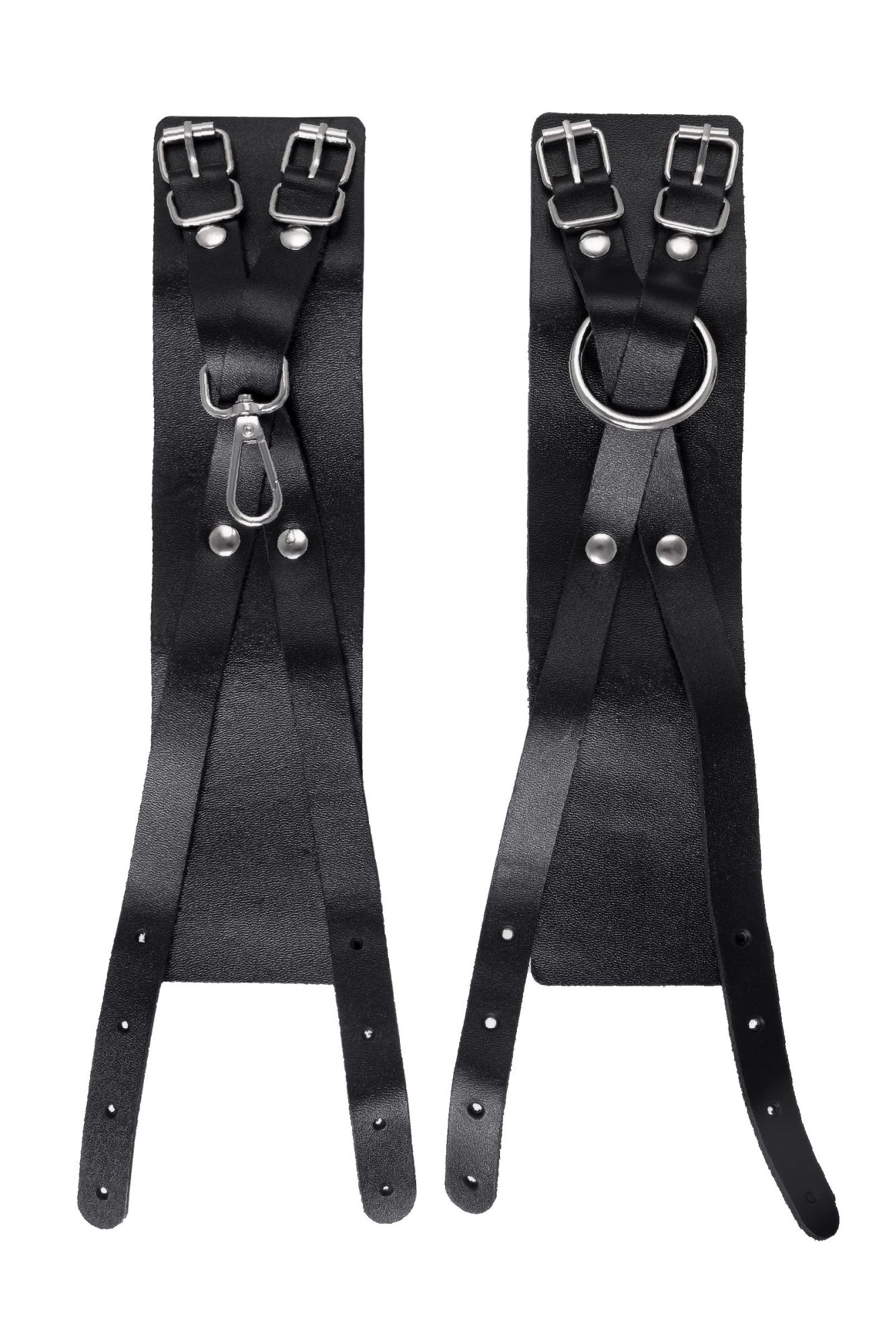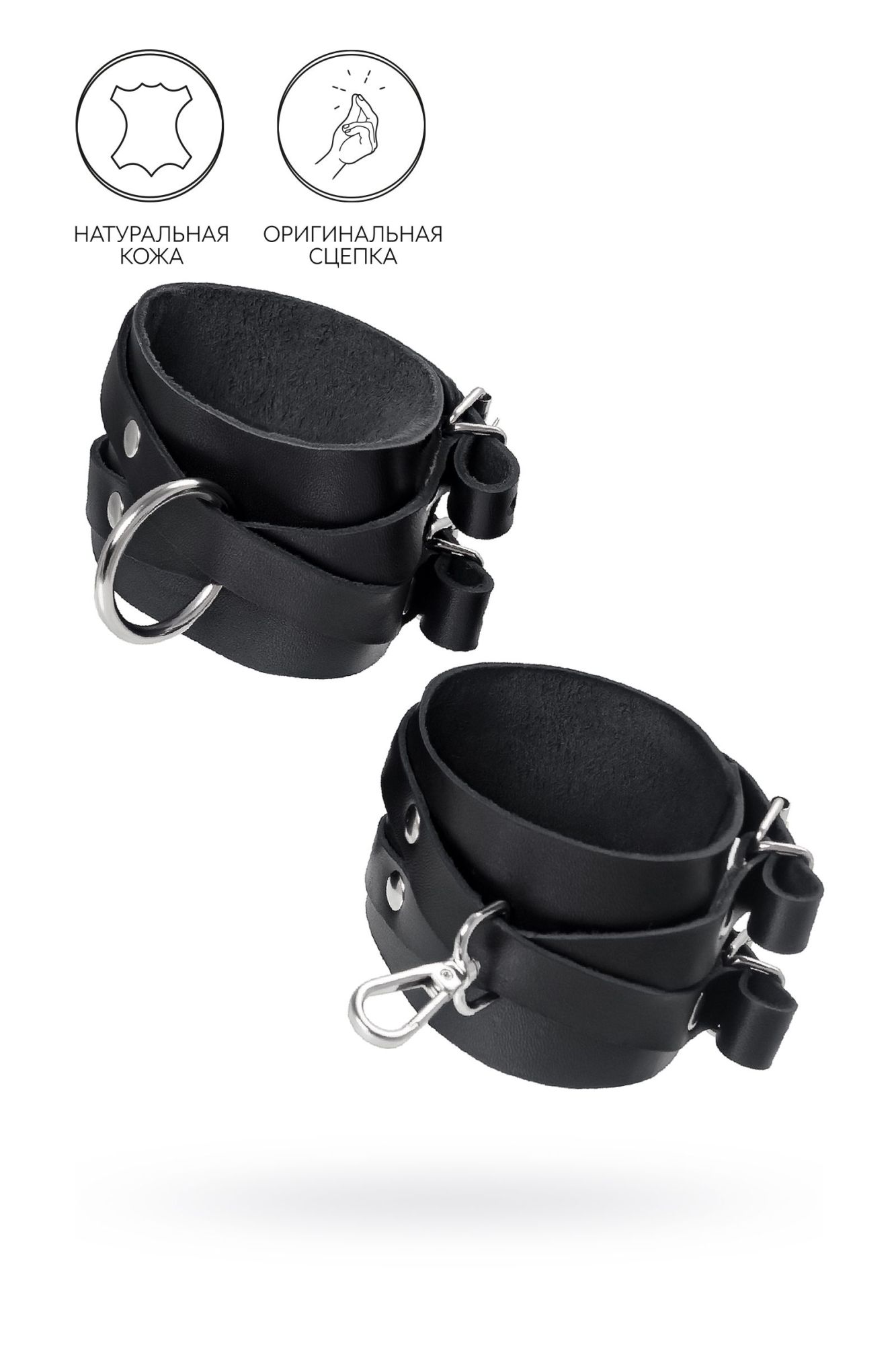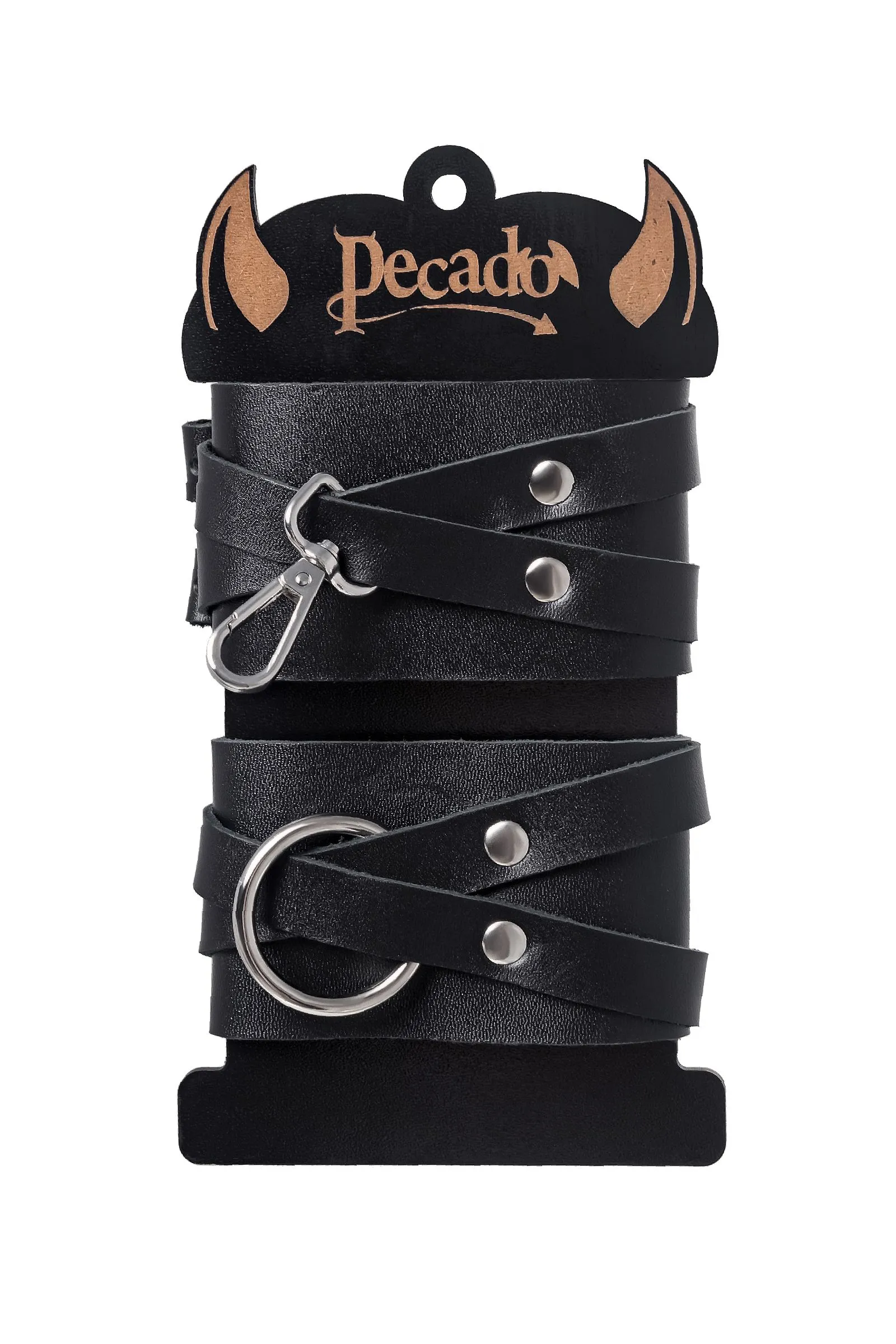 Черные оковы с оригинальным дизайном от российского производителя Pecado созданы для Вашего наслаждения. Они отлично смотрятся как на женских, так и на мужских ногах. Каждая деталь оков сделана с огромным трепетом и вручную. Аксессуар приятно держать в руках, а также использовать по назначению. Натуральная, экологичная кожа с терпкий ароматом обладает хорошей износостойкостью. Материал плотный, прекрасно держит форму и не мнется. Благодаря хорошей ширине манжет и металлической застежке, оковы отлично фиксируют ноги. Вся фурнитура высокого качества. На ремешках имеется хороший запас регулировки, что позволяет подобрать необходимый размер. Обе манжеты обладают разным дизайном. Главное отличие от других изделий в металлических деталях: на одном наручнике большое кольцо, на другом – карабин. При желании атрибут возможно дополнить другими аксессуарами. Подходят как неопытным парам, так и знатокам БДСМ-культуры. ● 100% натуральная кожа. ● Ручная работа. ● Износостойкий, тактильно приятный материал. ● Надежная высококачественная фурнитура. ● Универсальный размер. ● Длина манжет – 6 см, ширина манжет – 25,5 см, длина сцепки – 7,5 см.