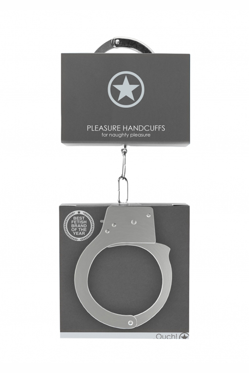 Металлические наручники Pleasure Handcuffs - специализированное приспособление для жесткой и надежной фиксации и обездвиживания партнера при эротических ролевых играх и практиках БДСМ. Классические металлические наручники могут открываться как при помощи ключей, входящих в комплект, так и с помощью механизма непосредственно на них. Кольца соединены между собой короткой неэластичной сцепкой.