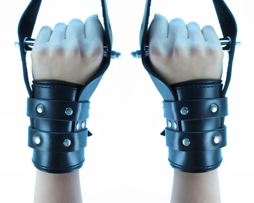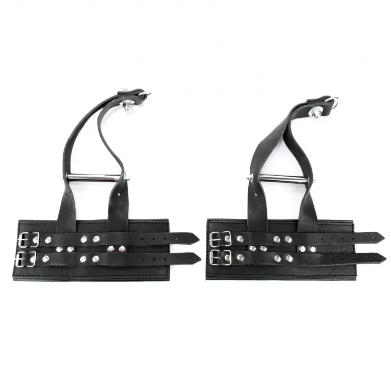 Наручники для подвешивания выполнены из толстой кожи черного цвета с регулируемыми ремешками. Использована усиленная металлическая фурнитура. Для настоящих ценителей ролевых игр. Характеристика: длина наручников- 25,5 см, ширина 10 см, длина метталических держателей- 10 см, диаметр- 1,5 см. Длина подвесных лент- 30 см. Без упаковки.