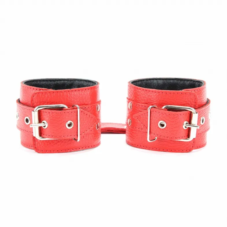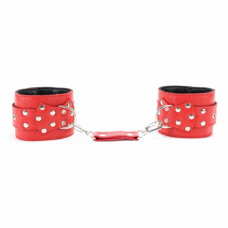 Оковы из красной кожи можно использовать для рук или ног. Верхний слой мягкий кожаный, нижний – велюр. Чтобы секс-наручники 56001ars не натирали, слои между собой проклеены мягкой прокладкой. Прочные оковы из красной кожи надежно сцеплены металлической цепью, с внешней стороны украшены фурнитурой – кнопками. Секс-наручники надежно фиксируют руки за счет ремней, партнерша будет только Вашей! Характеристики оковы из красной кожи 56005ars: цвет – красный, материал – кожа, металл, длина – 35 см, диаметр – 5 см, длина цепочки – 15 см, производитель – BDSM Арсенал (Россия).
