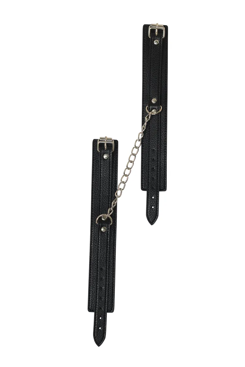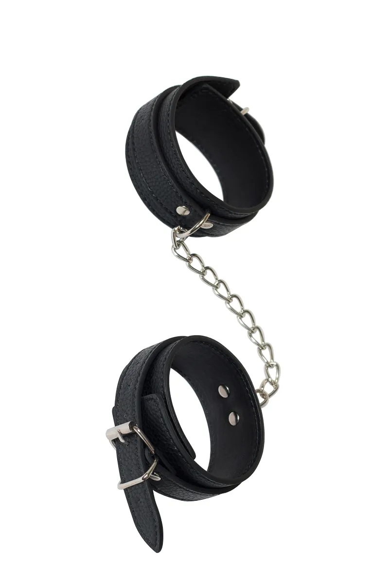 Обезоружить партнера и показать ему, кто сегодня руководит сценарием, можно с помощью одного простого приспособления - поножей. Натуральная ПВХ-материал нежно захватывает ногу в приятный плен, подчеркивая изысканность и пикантность ситуации, и дарит совершенно новые ощущения, связанные с невозможностью полноценно двигаться. Если же жертвой сегодня будете не Вы, то сможете вдоволь насладиться и поиграть с каждой частью тела своего пленника. Поножи очень прочные, поэтому Вы можете прикрепить их к любому элементу мебели, возле которого будет разгораться ваша страстная игра. Общая длина: 32,5 см, Ширина: 4 см.