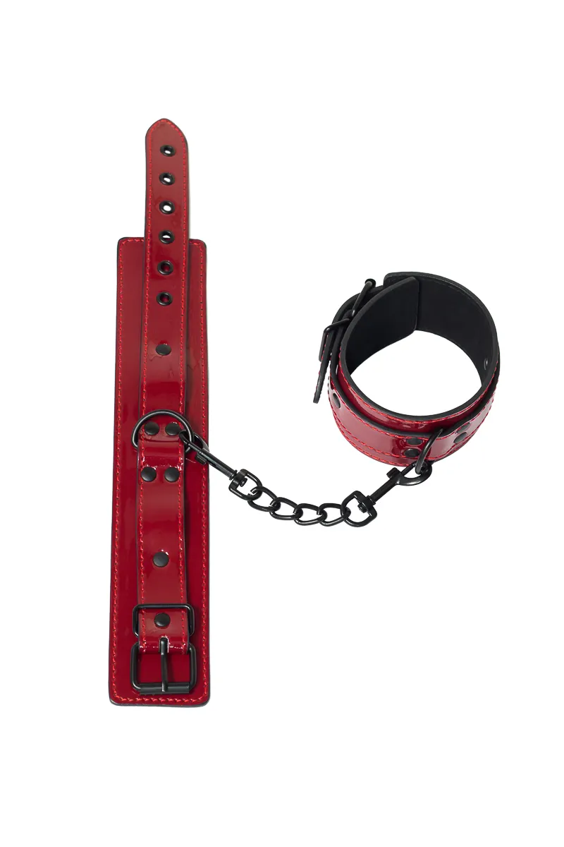 Обезоружить партнера и показать ему, кто сегодня руководит сценарием, можно с помощью одного простого приспособления - поножей. Натуральная ПВХ-материал нежно захватывает ногу в приятный плен, подчеркивая изысканность и пикантность ситуации, и дарит совершенно новые ощущения, связанные с невозможностью полноценно двигаться. Если же жертвой сегодня будете не Вы, то сможете вдоволь насладиться и поиграть с каждой частью тела своего пленника. Поножи очень прочные, поэтому Вы можете прикрепить их к любому элементу мебели, возле которого будет разгораться ваша страстная игра. Общая длина: 37 см, Ширина: 5 см.