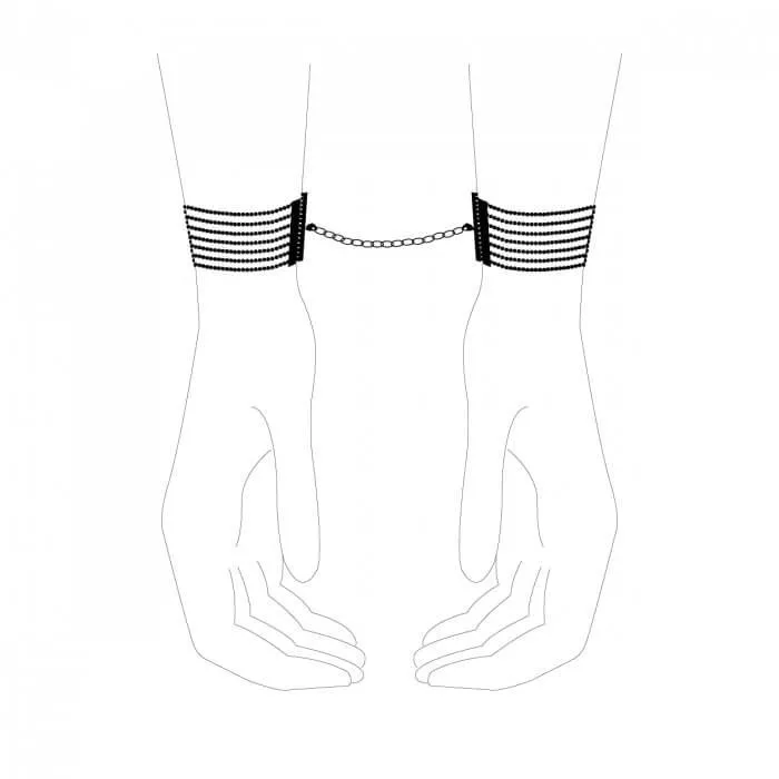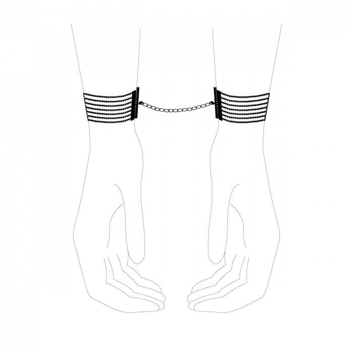Элегантные браслеты из серии Magnifique от бренда Bijoux Indiscrets - это необычный аксессуар, который можно использовать и как украшение, и как наручники. Дизайн аксессуаров из серии Magnifique был навеян танцовщицами кабаре в Нью-Йорке двадцатых годов прошлого века, чья чувственность и соблазнительность присутствовали в каждой детали их образа. При выходе в свет браслеты подчеркнут Вашу элегантность и уникальный стиль, а в приватной обстановке с Вашим возлюбленным они превратятся в мощное оружие соблазнения. Соедините браслеты при помощи небольшой цепочки, чтобы превратить их в наручники. Они будут прекрасно сочетаться с чокером из этой же серии. Наручники можно регулировать по размеру.