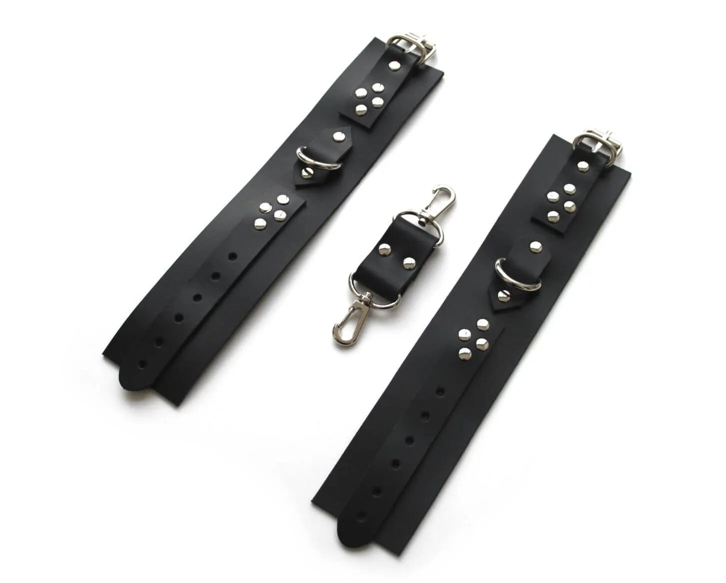 Наручники регулируются по размеру. Натуральная кожа толщиной 2.3 мм.