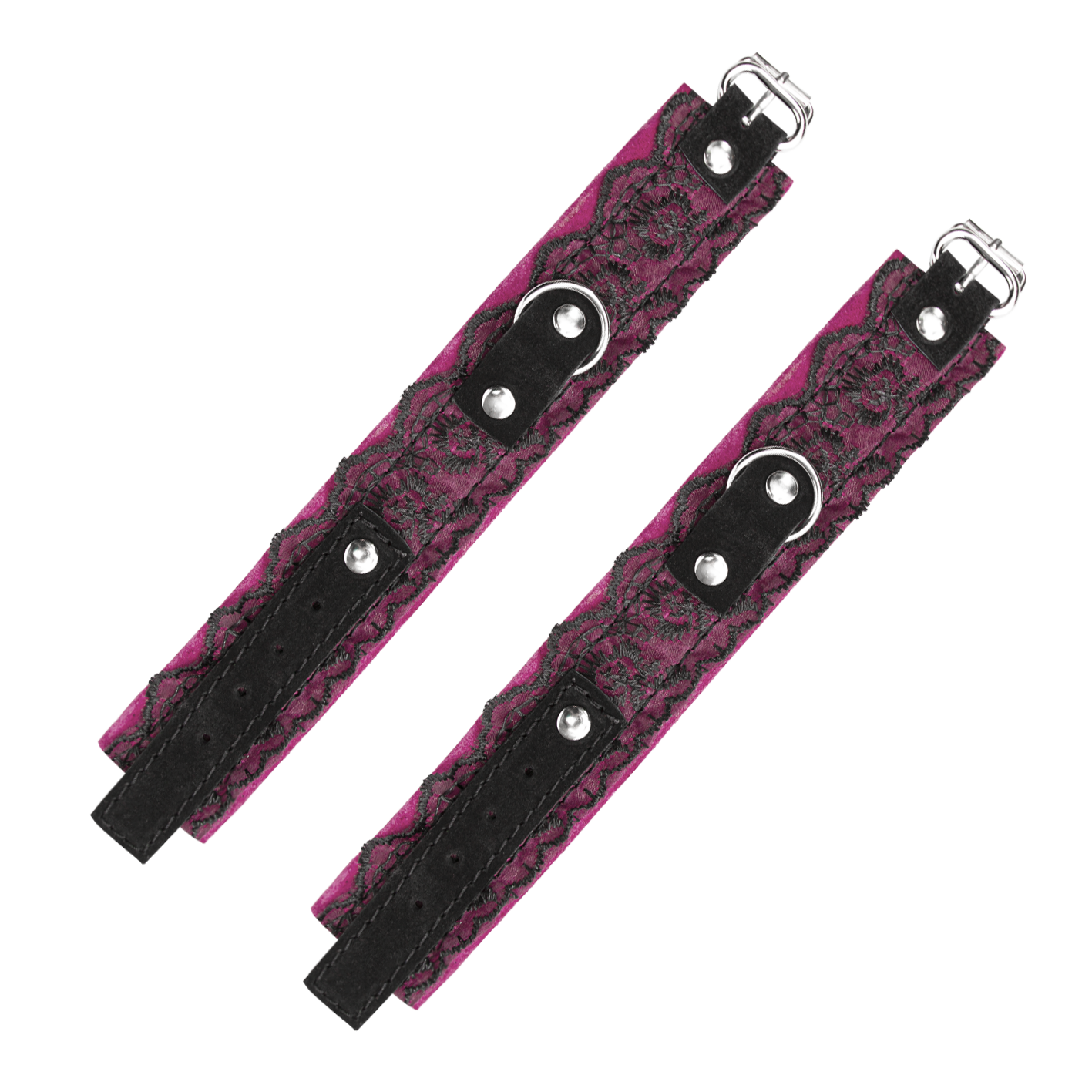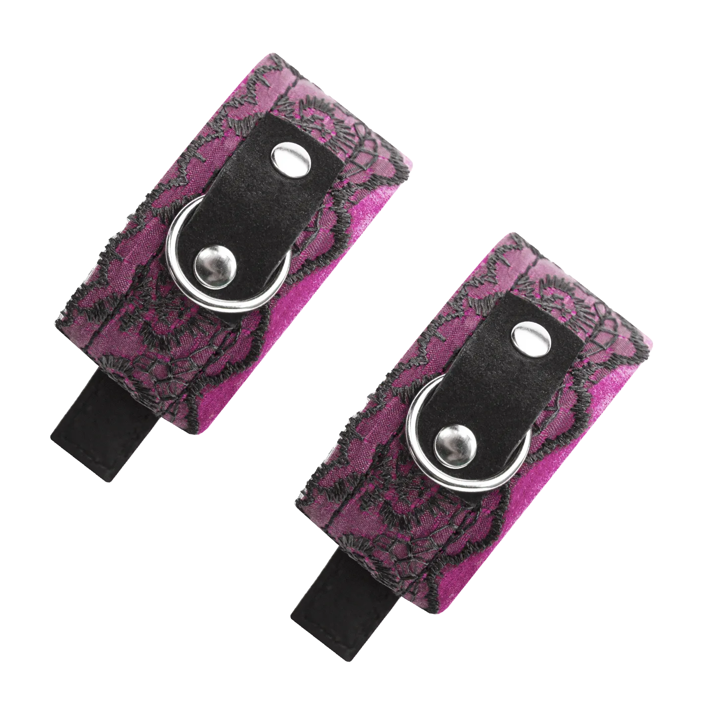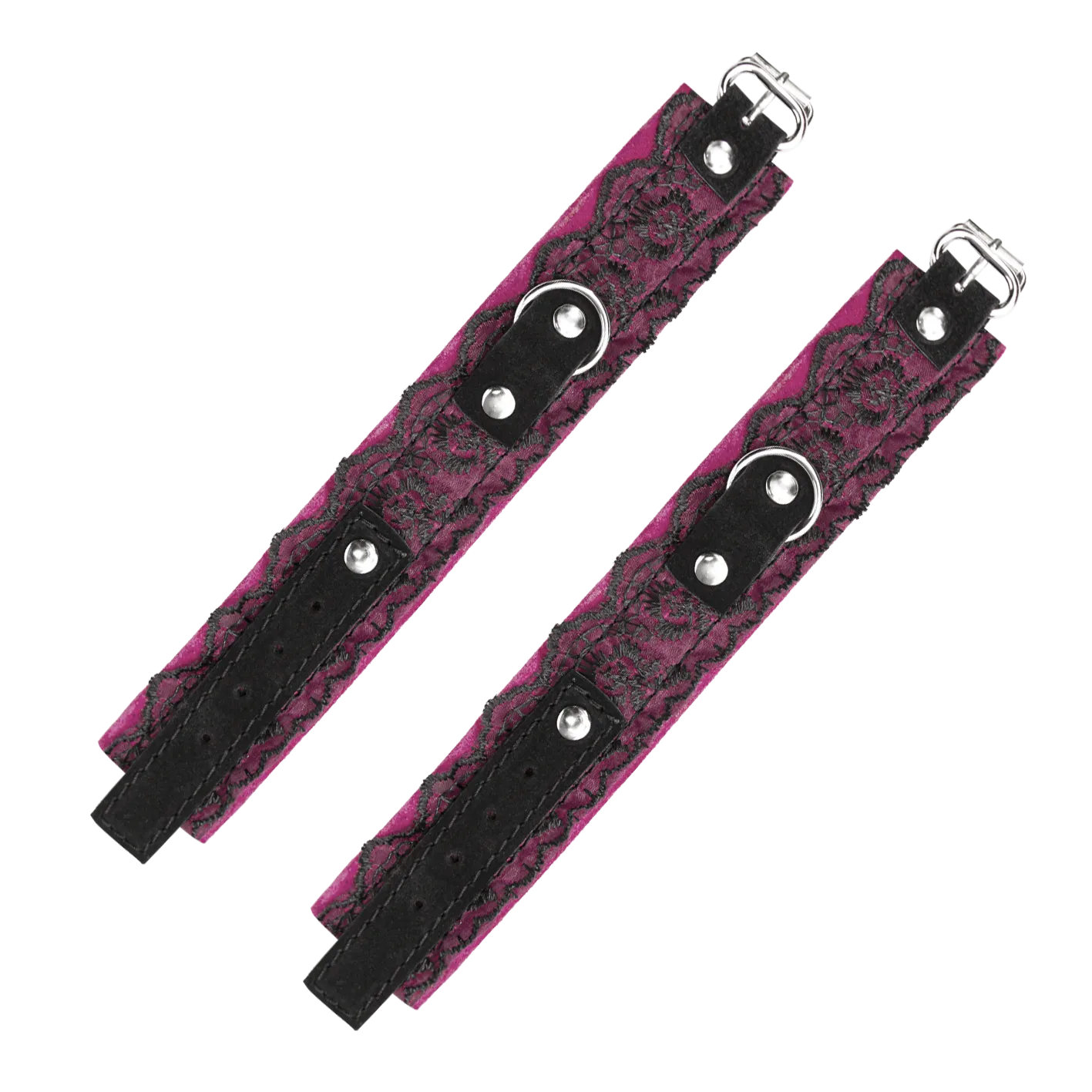 В этот комплект для БДСМ игр входят замшевые ошейник и наручники, украшенные тонким кружевом. Получите полную сексуальную власть над своим партнером, ограничив его свободу этим невероятным комплектом, и он не сможет покинуть Вас без Вашего разрешения. На аксессуарах есть крупные металлические полукольца, к которым можно будет присоединить поводок или другие бондажные аксессуары.