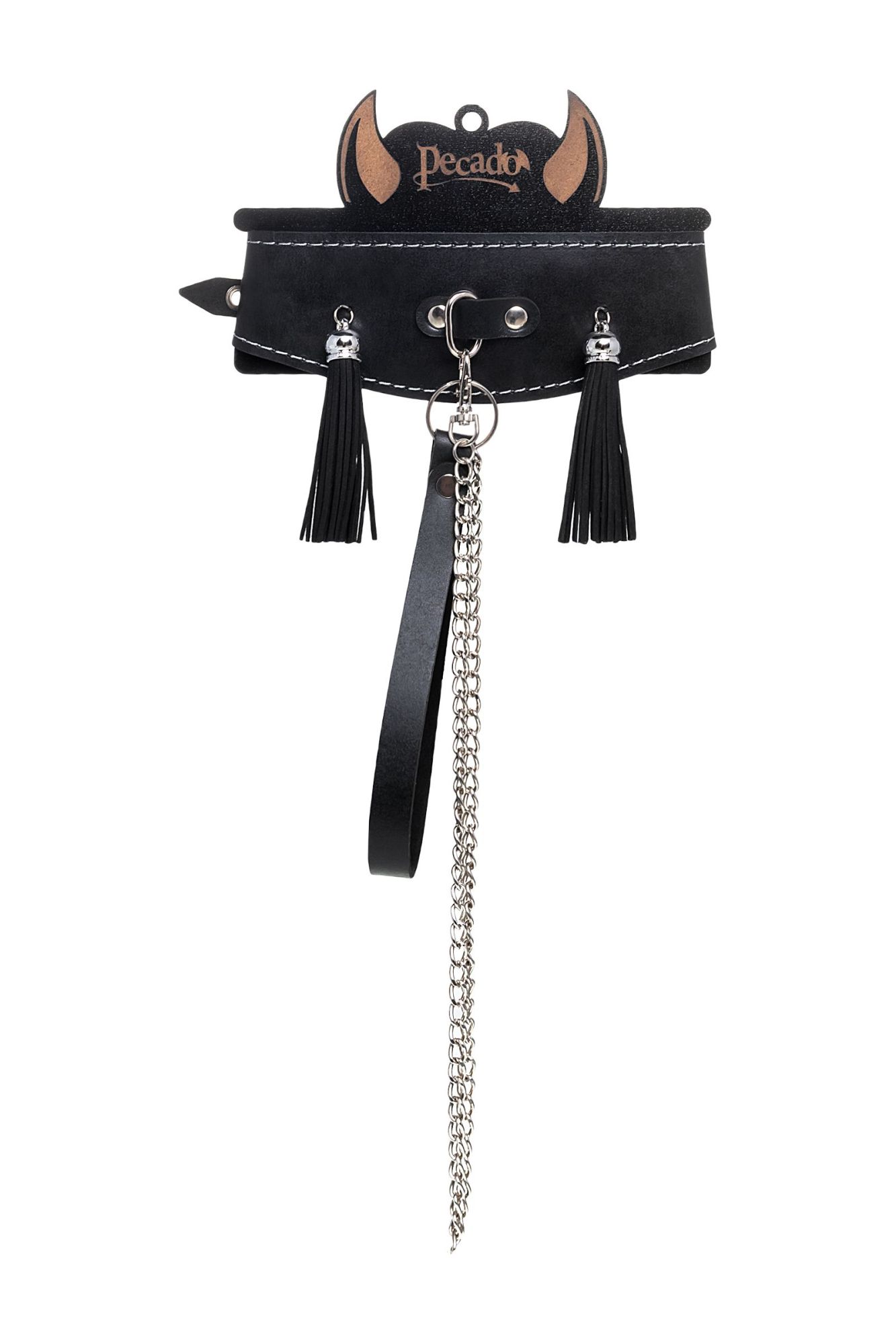 Готовы играть по-взрослому? Не бойтесь своих желаний! Основатели бренда уверены: лучший способ избавиться от искушения - поддаться ему! Добавьте пикантную деталь в ролевую игру и воплотите самую смелую сексуальную фантазию в реальность! Оригинальный дизайнерский ошейник из натуральной кожи с кисточками производства Pecado BDSM с металлическим поводком может стать отличным дополнением в БДСМ-образ. Ошейник может выполнять не только свою первичную функцию — без поводка аксессуар послужит своеобразным украшением и добавит страсти в образ. Добавьте пикантную деталь в ролевую игру и воплотите самую смелую сексуальную фантазию в реальность — взрослые игры для взрослых. Поводок в виде цепочки имеет ручку-петельку для удобства хозяина и крепится надежным стальным карабином к кольцу на ошейнике. Легко отстегивается и превращает ошейник в чокер, который легко вписать в любой образ. К металлическому кольцу также можно присоединить и другие аксессуары при помощи карабинов. Благодаря универсальному размеру ошейник может использоваться как женщинами, так и мужчинами – размер легко регулируется с помощью металлической пряжки, органично вписывающейся в общий стиль. Ширина ошейника 4-7 см, длина ошейника 38 см, длина поводка 80 см. Pecado BDSM – российский бренд, использующий высококачественные материалы и надежную, проверенную временем фурнитуру. Все изделия изготавливаются вручную из натуральной кожи, безопасный и экологичный материал не оставляет повреждений на запястьях. Натуральная кожа, металлические крепления и ремешки дают уверенность в надежной фиксации, устойчивости к механическим нагрузкам и долговременном использовании. Ширина ошейника — 4-7 см. Длина ошейника — 38 см. Длина поводка — 80 см.