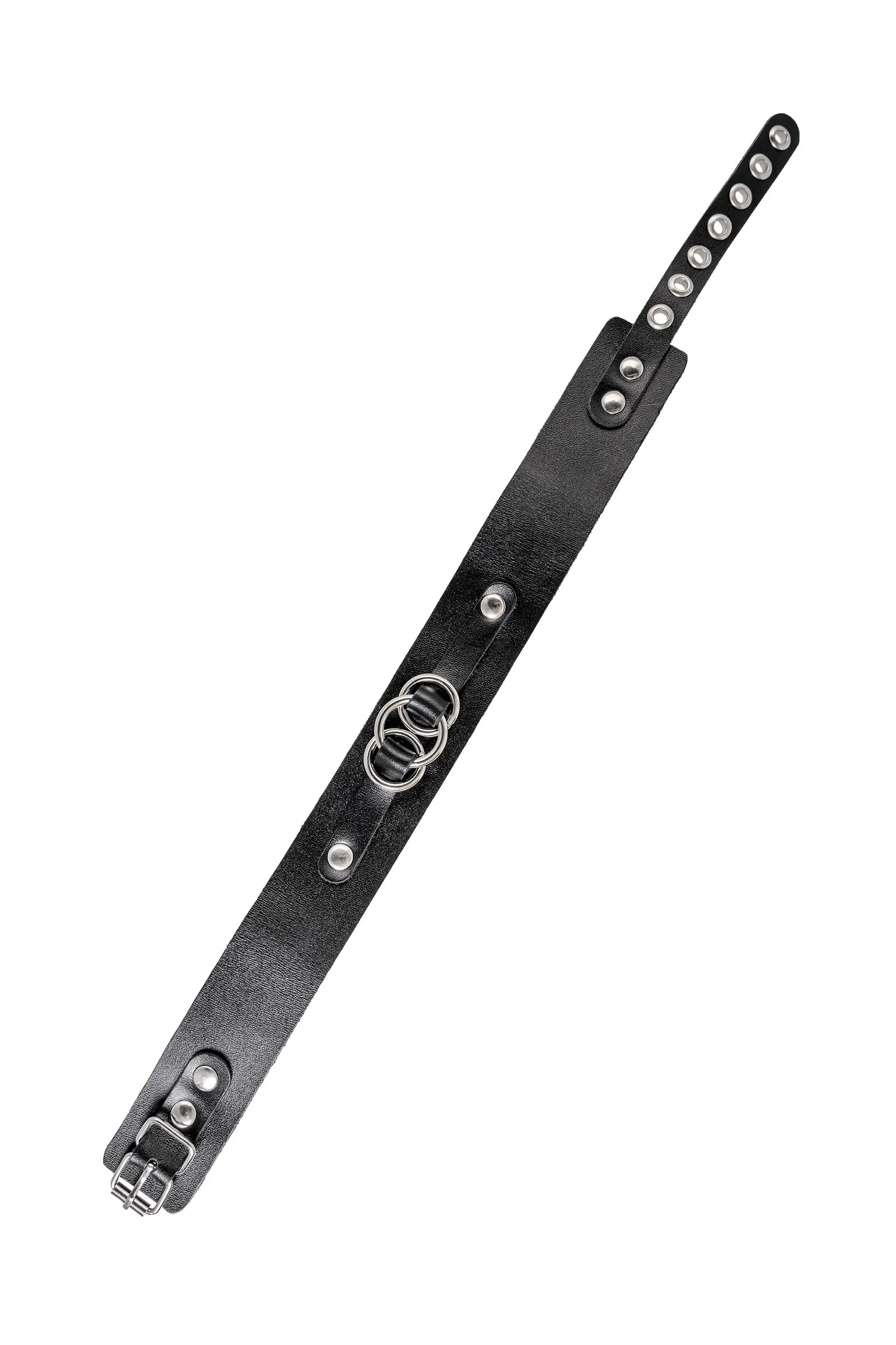 Чокер-ошейник со связанными кольцами от Pecado поможет расставить роли в сексуальных играх. Пикантный аксессуар изготовлен в лучших традициях БДСМ культуры. Девайс выполнен полностью вручную. Черный, износостойкий материал плотно прилегает к шее, не слетает и не оставляет следов на теле. Аромат кожаной ленты вызывает особенный трепет в теле. Атрибут универсального размера: подходит и мужчинам, и женщинам. С помощью отверстий и металлической пряжки можно подобрать удобный размер. Также благодаря пряжке чокер крепко фиксируется на необходимый обхват шеи. Ааксессуар можно использовать в качестве стильного украшения в дерзком образе для фотосессии, съемок, тематических вечеринок. Для тех, кто желает погрузиться в мир новый чувств. ● 100% натуральная кожа. ● Износостойкий, тактильно приятный материал ● Надежная высококачественная фурнитура. ● Универсальный размер: максимальная длина аксессуара – 45 см, ширина 1,5 см. ● Подходит к поводку (Арт 03118)
