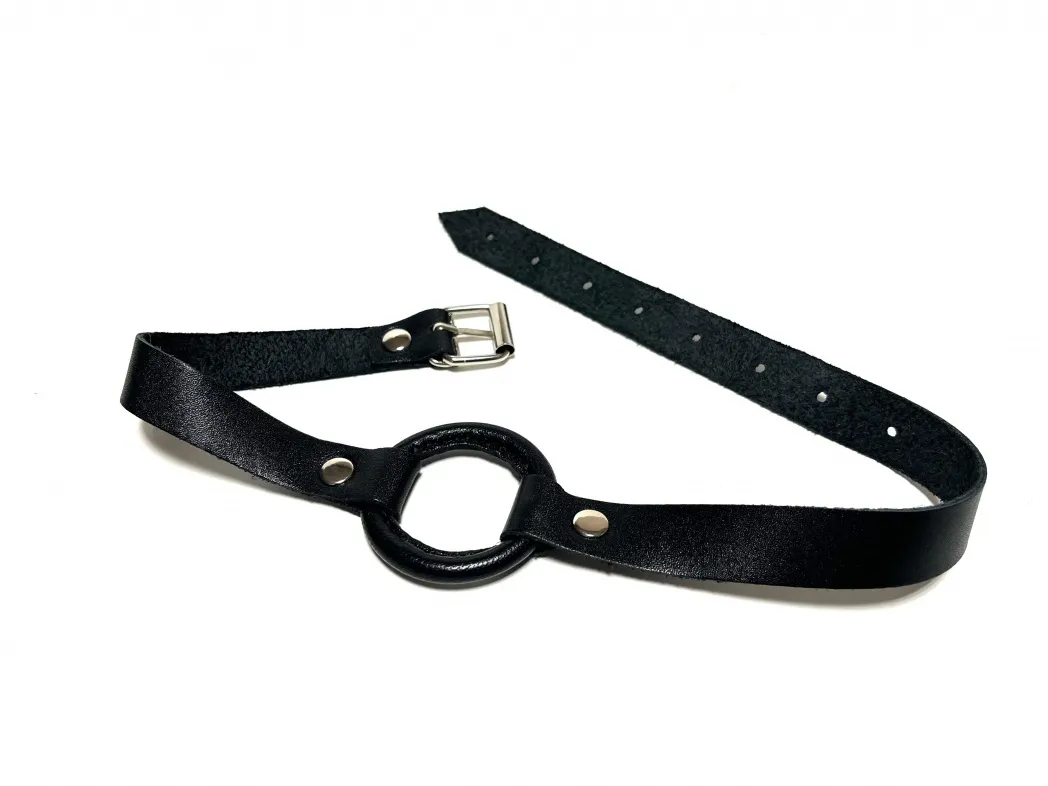 Строгий и надежный кляп, выполненный из натуральной кожи черного цвета. В основании использовано сварное металлическое кольцо диаметром 4,5 см, обтянутое нежной овечьей кожей. Ширина ремешков 1,8см, обхват удобно регулируется с помощью металлической пряжки. Такой кляп станет отличным элементом БДСМ игры, функциональным и комфортным в использовании. Материал: натуральная кожа, металл Цвет: черный