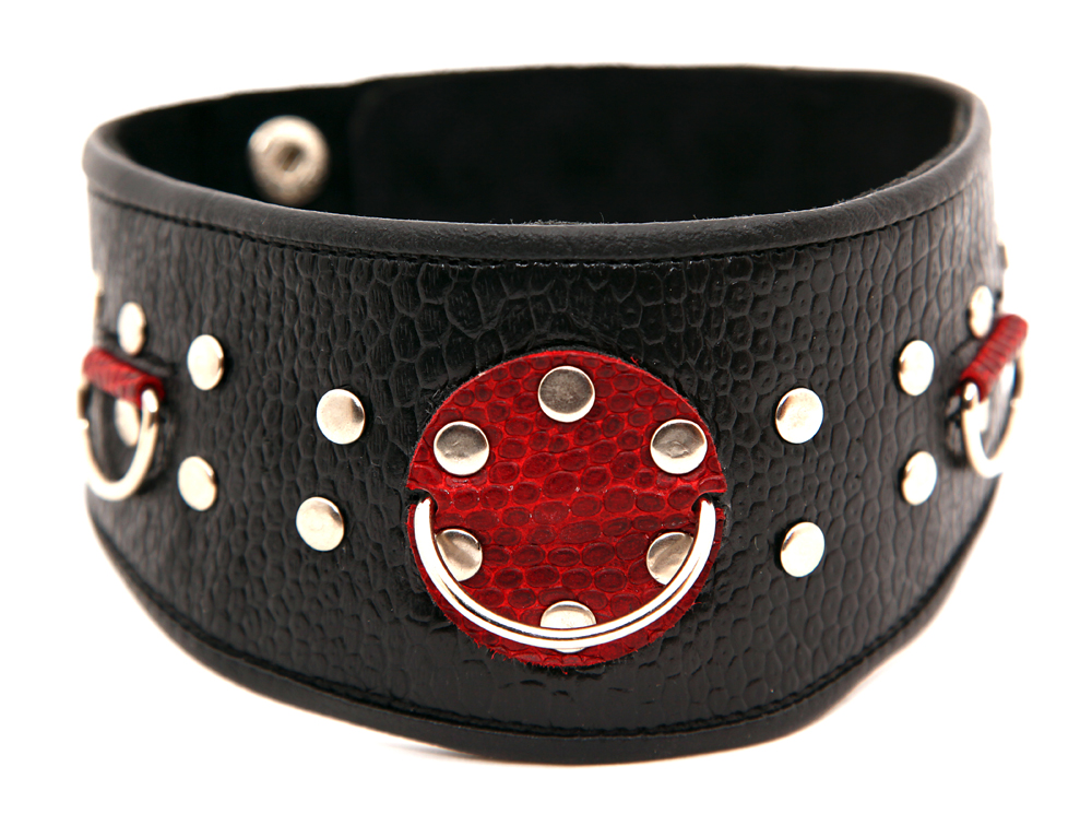 Широкий ошейник 55006ars для БДСМ игр в качестве наказания за провинность. Фетиш-изделие черного цвета с контрастной красной вставкой и хромированными заклепками, которые добавляют аксессуару дерзости. В ошейник вставлены D-кольца, с ними фетиш-изделие соединяется с бандажом или поводком. Вы символически посвящаете партнера в сексуальное рабство, ведущая роль всецело принадлежит именно Вам. Характеристики ошейник кожаный с клепками 55006ars: цвет – черный, красный, материал – кожа, длина – 40,5 см, ширина – 4,7 см, производитель – BDSM Арсенал (Россия).