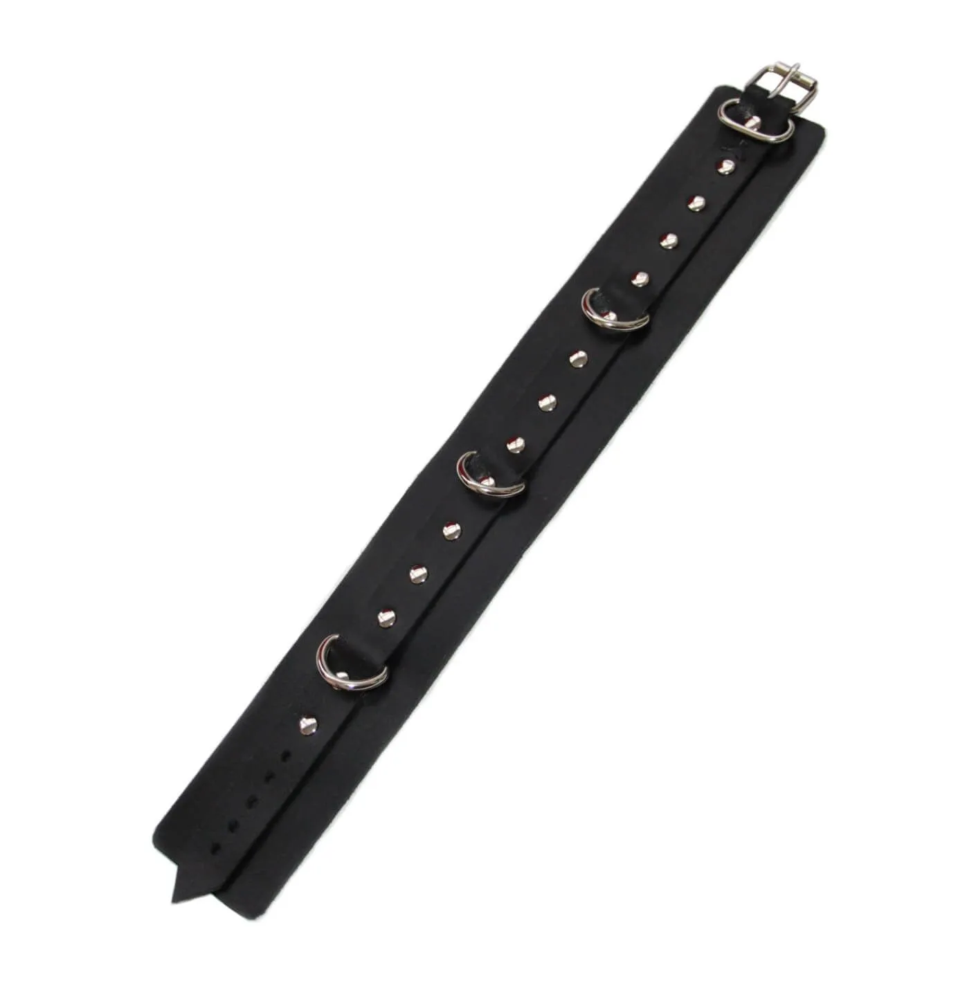 Ошейник выполнен из натуральной кожи толщиной 2.3 мм и декорирован тремя металлическими кольцами. Он понравится тем, кто предпочитает интимные игры с элементами БДСМ, ведь он добавит образу сексуальности и дерзости и идеально дополнит любой ролевой эротический костюм. К трем кольцам можно присоединять различные бондажные аксессуары или поводок при помощи карабина, чтобы зафиксировать партнера в нужной позе.