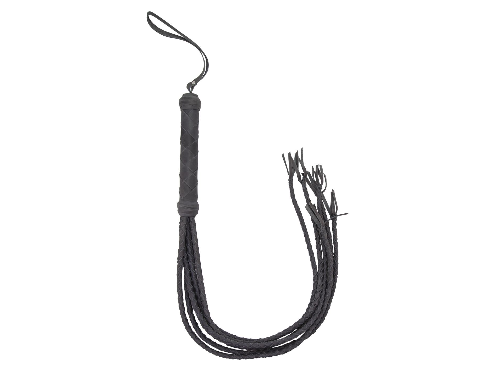 Плеть многохвостка выполнена из лаковой натуральной кожи в черно-красной цветовой гамме. Состоит из плетенной ручки и 6 хвостов круглого плетения. Хвосты заканчиваются "кисточками" сплетенными особым способом без узлов. На рукоятке имеется петля для фиксации на руке. Имеет достаточно большую площадь соприкосновения с телом при ударе, но, по сравнению с флогером, оказывает более сильное воздействие при той же силе, так как имеет особое плетение хвостов. Применяется на уже разогретом теле.