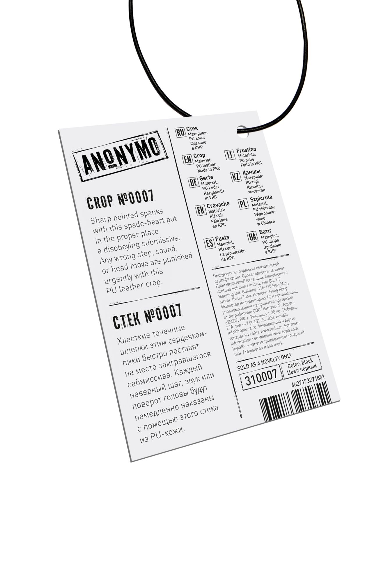 Доминирование и подчинение с помощью ограничения свободы — это еще не все, что вы можете сделать друг с другом. Черный стек с наконечником в форме сердечка-пики пригодится для ощутимого наказания непослушного партнера. Хлесткие точечные шлепки или указка – заигравшийся сабмиссив быстро поймет свою ошибку. Каждый неверный шаг, звук или поворот головы будет немедленно наказан с помощью жесткого стека из PU кожи. Сочетание напряжения, власти и элегантности – с этим стеком можно наказать провинившегося сабмиссива и еще раз продемонстрировать кто в паре главный. Материал: PU кожа Цвет: черный Общая длина: 36 см Длина наконечника: 8 см Ширина наконечника: 7 см