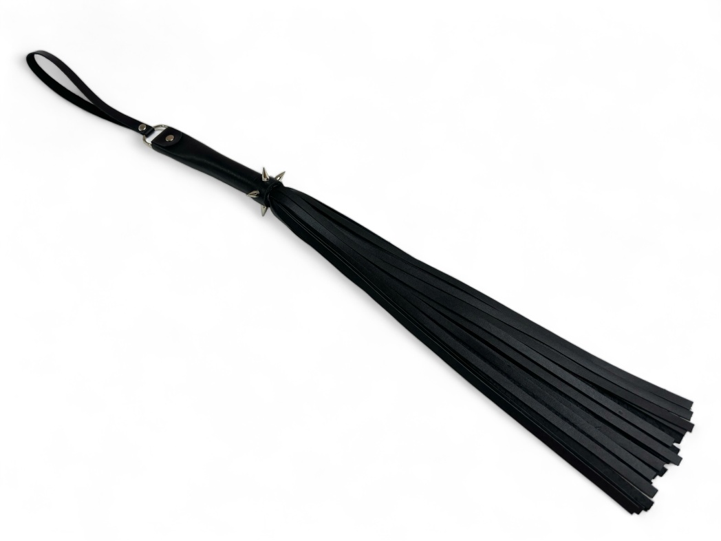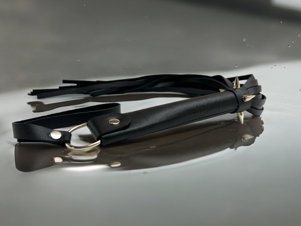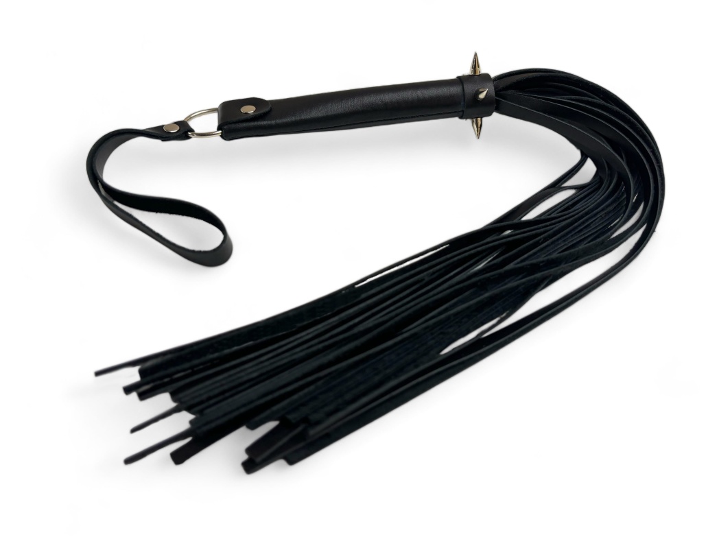 Плеть Risky Arsenal - идеальный вариант для любителей острых ощущений и ярких переживаний во время любоной игры! Аксессуар выполнен из натуральной черной кожи высокого качества, имеет необычную стильную форму рукоятки, которая дополнительно декорирована металлическими шипами. Предлагаем включить фантазию и поиграть с плетью не только стандартным способом: можно завязать партнеру глаза и использовать шипастую рукоятку в качестве своеобразного колеса Вартенберга, что может очень круто разнообразить сценарий. Общая длина аксессуара 55см, длина хвостов 40см, их количество 25 штук. Для удобства на рукоятке имеется кожаная петелька.