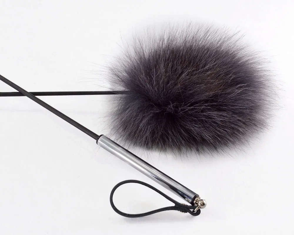 Стек для нежных прикосновений. Мех является не только фетиш-атрибутом, но и может служить дополнением к образу Госпожи в ролевых играх. Общая длина 55-57 см. Натуральный мех 15-18 см. Металическая рукоять 10-12 см, ремешок из натуральной кожи 7-8 см.