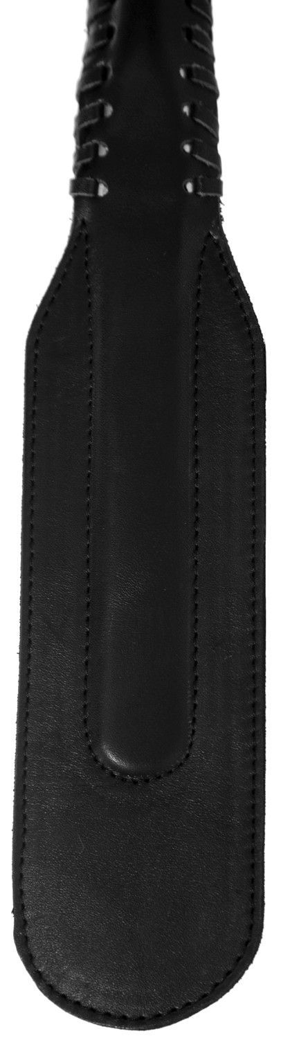 Черного цвета узенькая хлопалка от компании "Подиум" имеет удобную рукоятку, оплетенную по краю кожаной полоской, отчего аксессуар выглядит красиво и стильно. Пружинящая вставка из полимерного материала придает спанкеру гибкость. Применять его можно для работы по ягодицам и по верхним мышцам внутренней стороны бедра. Для руки имеется специальная петелька, закрепленная на металлическом колечке. Такая хлопушка из черной кожи великолепно подойдет для наказания во время жестких любовных игр у тех пар, которые выбирают БДСМ.