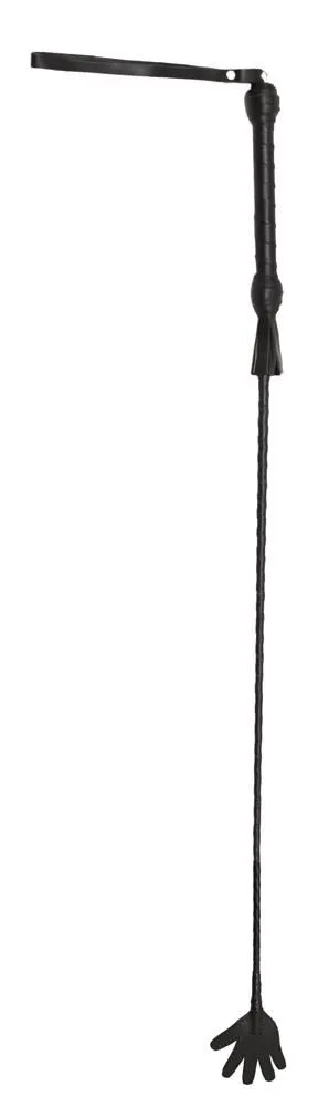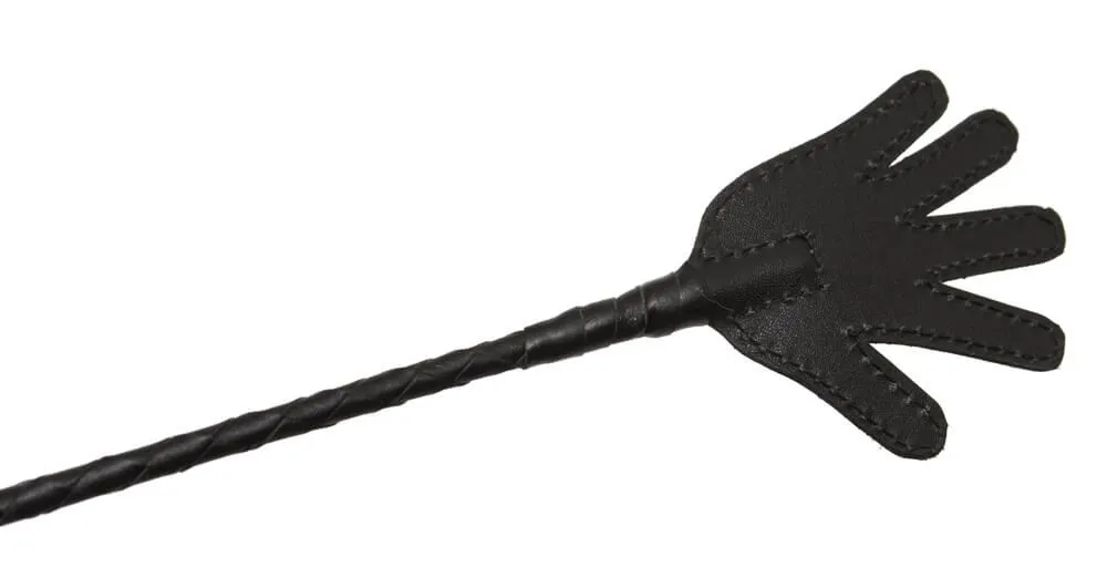 У этого стека гибкое основание, овитое черными лакированными полосками, и наконечник в виде ладошки длиной 10 см. Также у стека есть удобная рукоять с петлей для надевания на руку.