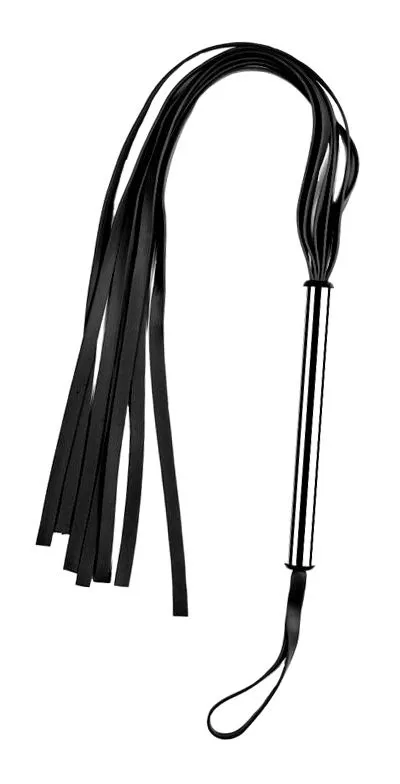 У данного аксессуара для БДСМ игр длинная тонкая рукоятка из металла, на одном конце которой расположена петелька для руки, а на другом множество кожаных хвостиков. Рукоять из никелированной трубки хорошо ложится как в мужскую, так и в женскую руку, а благодаря петле для запястья флогер точно не выпадет у Вас из рук. С помощью флогера Вы сможете устроить хорошую порку или же ласково погладить тело партнера либо партнерши. Так как полосы этого флогера мягкие, его будет безопасно использовать даже при сильных ударах. Если Вы предпочитаете жесткие игры, Вам точно понравится эта игрушка!