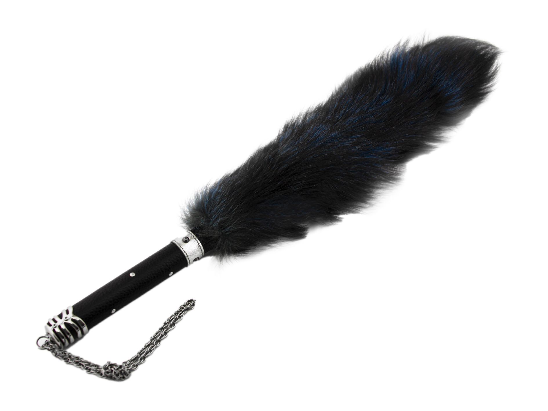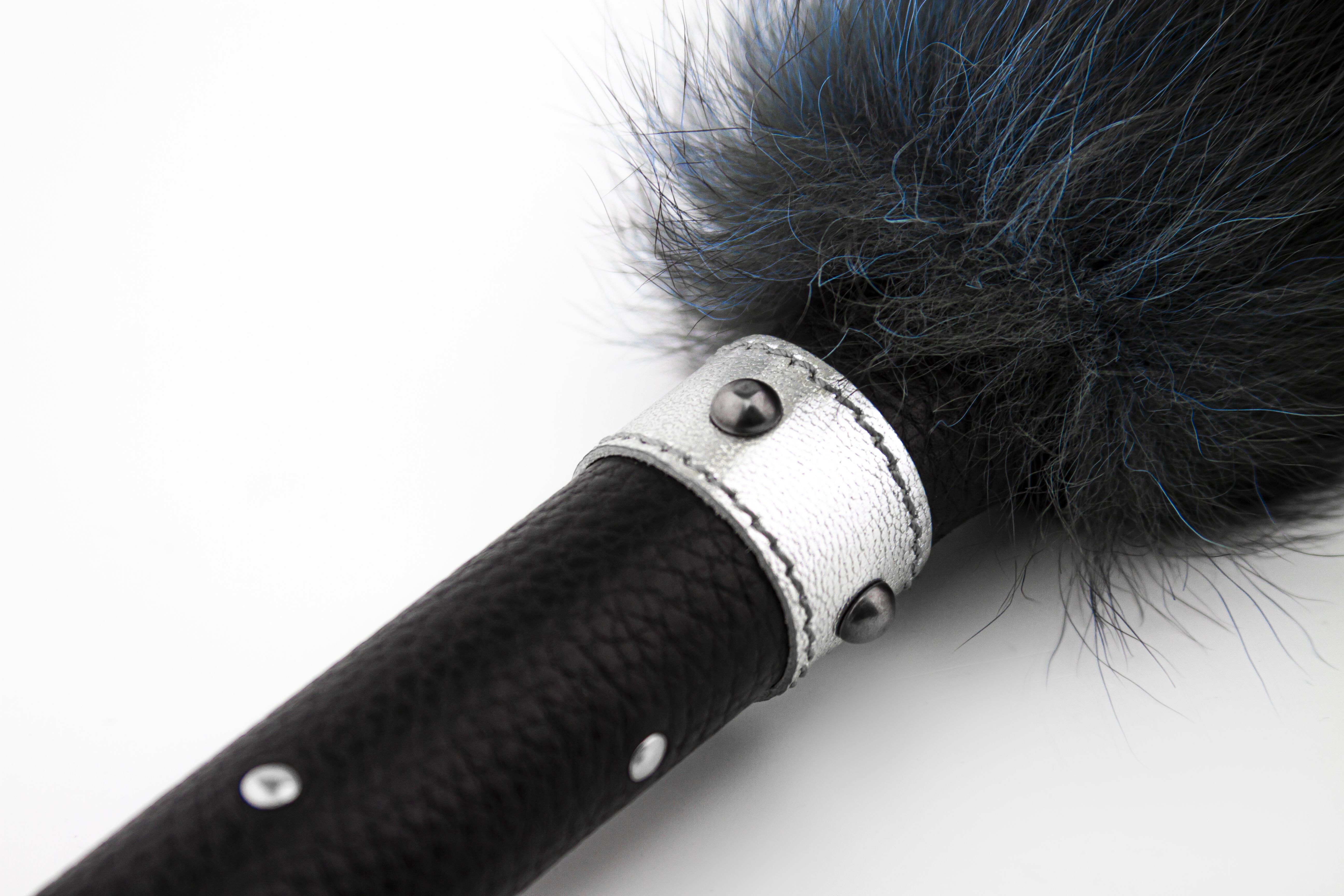 Флоггер с ручкой украшенной клепками и резным наконечником выполнен из натурального меха. Максимально удобная рукоять этой прекрасно ложится как в женскую, так и в мужскую руку. Мягкость меха этого флоггера обеспечивает безопасность даже при значительной силе удара.