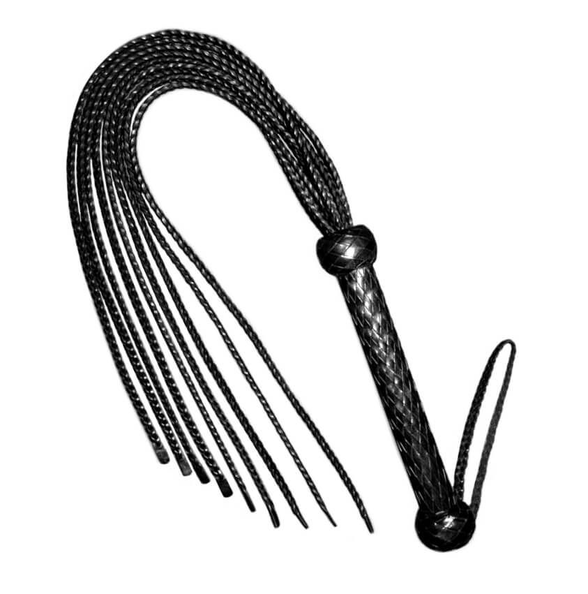 Плеть «кошка 9-хвостка Принцесса Востока» от бренда Beastly сделана из натуральной кожи черного цвета. У нее есть 9 плоских плетеных хвостов, оканчивающихся прямоугольными "шлепалками". На плетеной ручке с декоративными бобышками на концах есть кожаная петля для фиксации на запястье. Такая плетка станет отличным орудием для наказания партнера - наносите удары со всей страстью, чтобы вызвать острые, но возбуждающие ощущения.