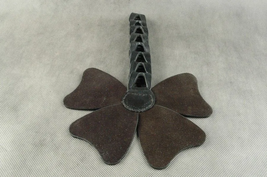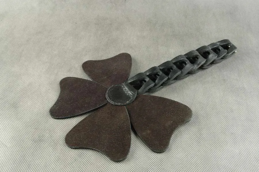 Шлепалка "Четырехлистник" от бренда Beastly сделана из натуральной кожи черного цвета в оригинальном дизайне в виде листа клевера. Четыре ее лепестка закреплены на ручке из 8 кожаных звеньев. Наносите ей чувствительные удары по ягодицам или бедрам, которые будут сопровождаться звонкими и возбуждающими шлепками. После наказания кожа еще долго будет гореть огнем, напоминая о мучительном, но вместе с тем сладком удовольствии.