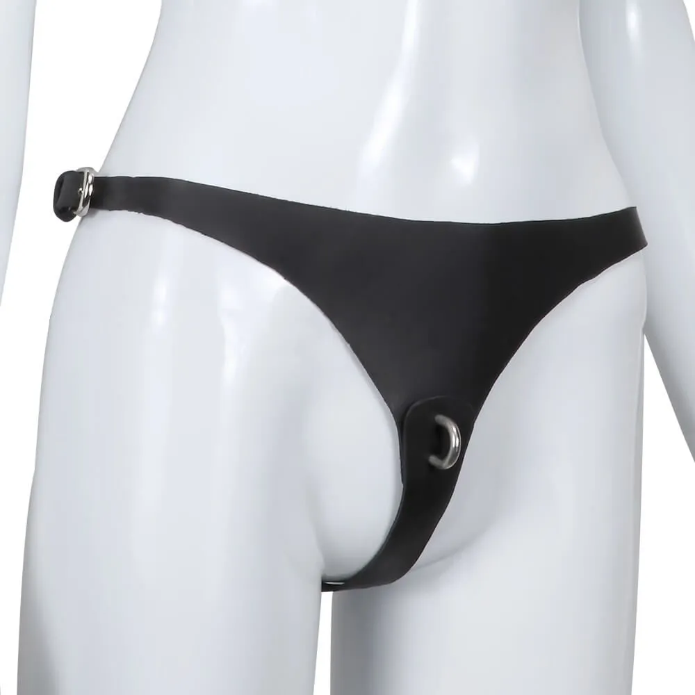 Спереди трусики надежно прикрывают самые интимные места, однако сзади почти полностью оголяют ягодицы. Они регулируются тремя ремешками с пряжками по бокам и в промежности, поэтому их можно будет подогнать под нужный размер.