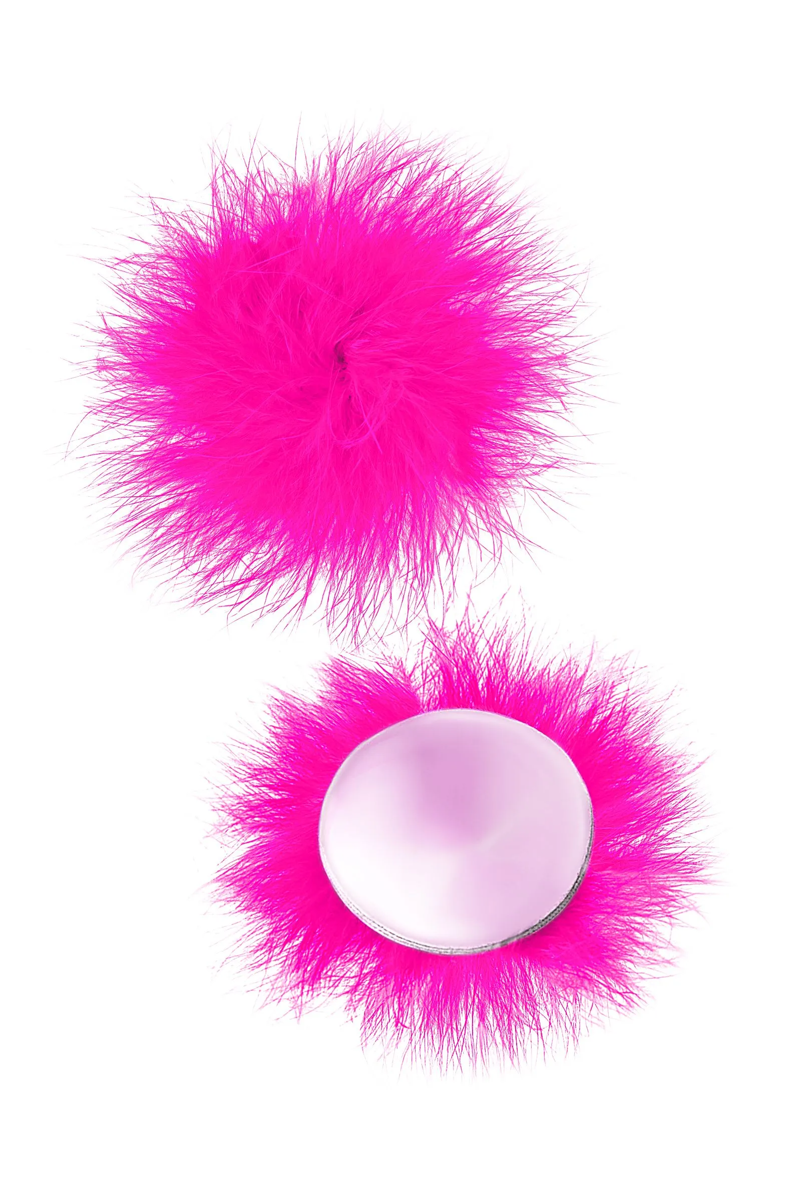 Наклейки на соски многоразовые. Однотонные. Основание выполнено из полиуретана, внутри — слой силиконового геля. Декор: искусственная кожа, пух. Размер основания: 5 см. Наклеивать на чистую кожу без следов косметических средств. Снимать осторожно. После использования внутреннюю сторону промыть теплой водой. Хранить, изолировав клейкий слой пленкой или приклеив к стеклянной поверхности (зеркалу). Не использовать при гиперчувствительности к силикону, нарушениях пигментации или повреждениях кожи груди.