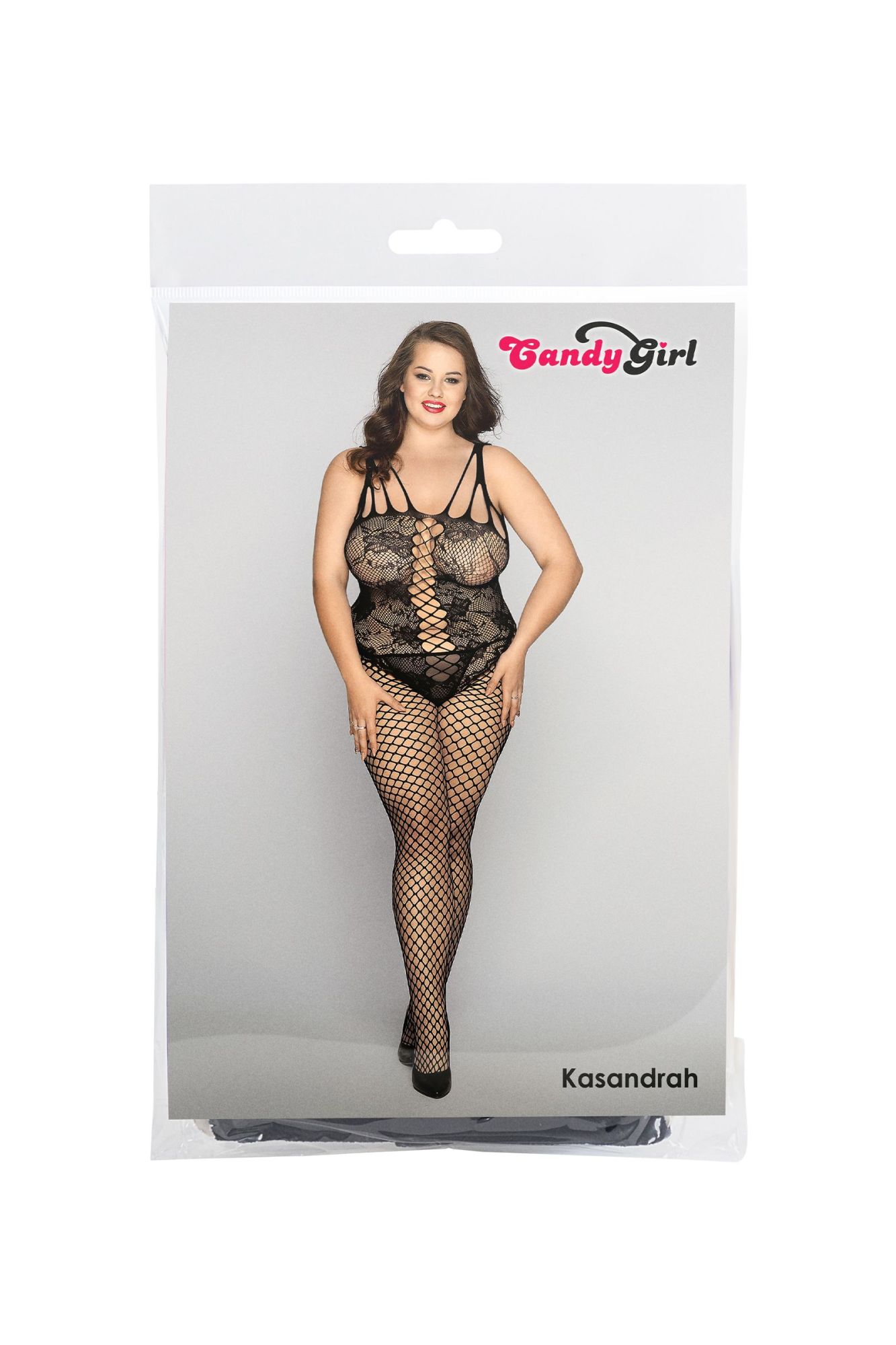 Эластичный бесшовный комбинезон из сетки c имитацией боди Kasandrah от Candy Girl® визуально вытягивает ноги и подчеркивает зону декольте. Вырез в интимной зоне, стринги и усиленные плотным плетением стопы чулок обеспечивают комфорт и эстетичность при использовании.