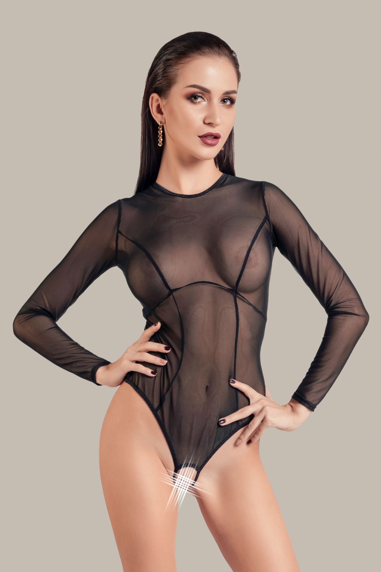 Линия провокационного эротического белья WANAME® Apparel — для женщин, которые достойны наслаждения и не скрывают этого. Эротическое боди с рукавами «Грэ́йс» (англ. Grace — «Изящество») из тонкой прозрачной эластичной сетки эффектно облегает фигуру. Ощущается совсем невесомым, не сковывает движений, но визуально меняет силуэт. Шелковистая поверхность материала дарит приятные ощущения при прикосновении. А современные элементы дизайна боди тешат женское самолюбие. Деликатные вертикальные швы акцентируют внимание на плавных изгибах тела и обеспечивают идеальную посадку. Горизонтальный шов визуально подчеркивает грудь. Обтягивающие рукава добавляют грациозности силуэту. Застежка на шее, аккуратно приоткрытая спинка и эротический доступ — важные детали чувственного образа. Белье Waname® Apparel эксклюзивно, разработано и произведено в России с учетом предпочтений российских покупательниц.